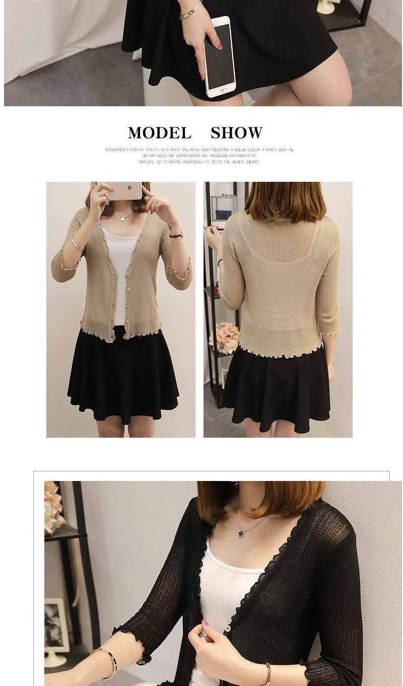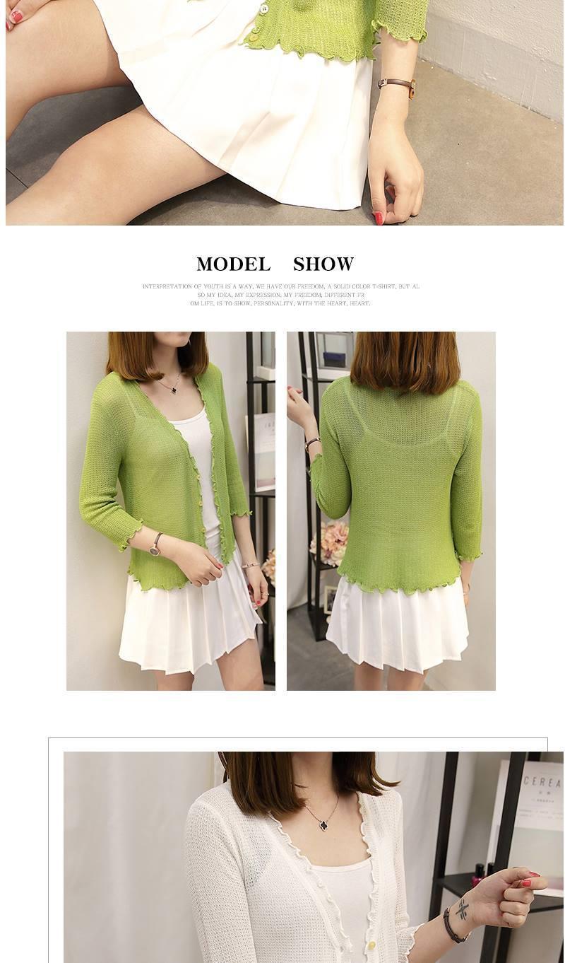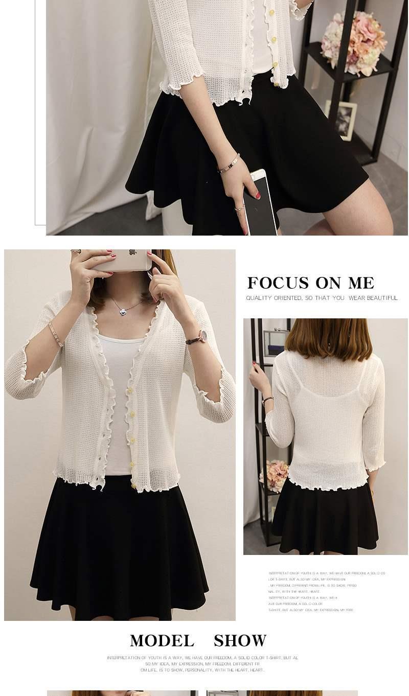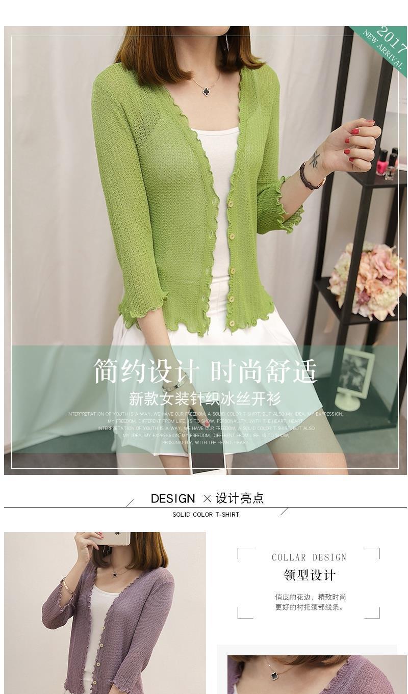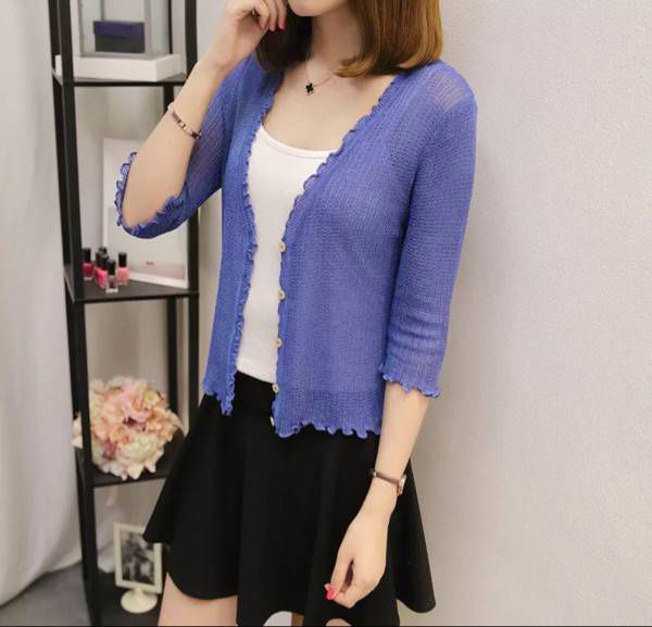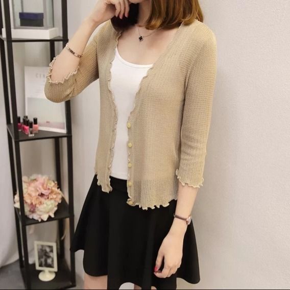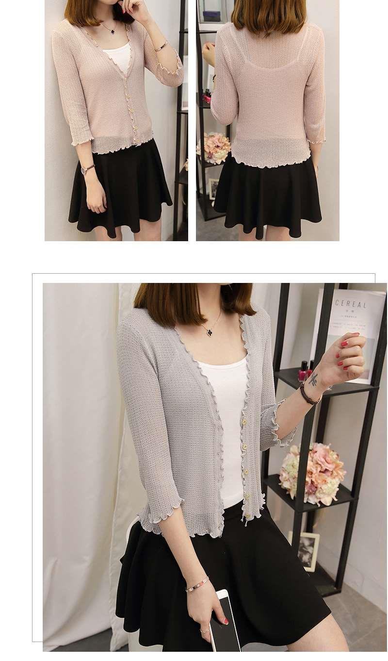 아이스 실크 니트 스웨터 여성용 가디건 여름 짧은 에어컨 셔츠 겉옷 얇은 짧은 코트 우드 이어 가장자리가있는 자외선 차단제 숄