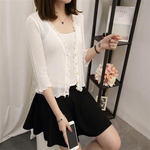 아이스 실크 니트 스웨터 여성용 가디건 여름 짧은 에어컨 셔츠 겉옷 얇은 짧은 코트 우드 이어 가장자리가있는 자외선 차단제 숄스토어 가기