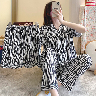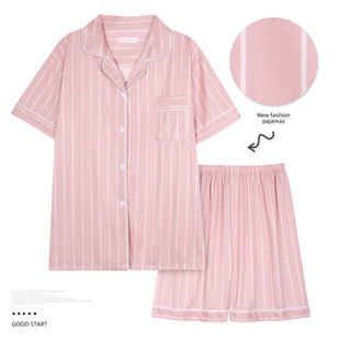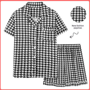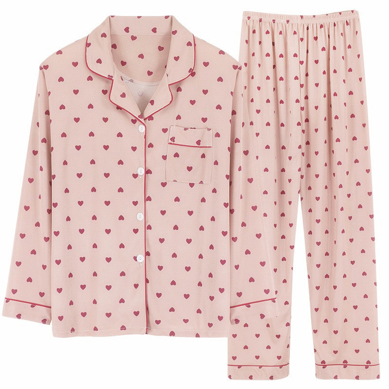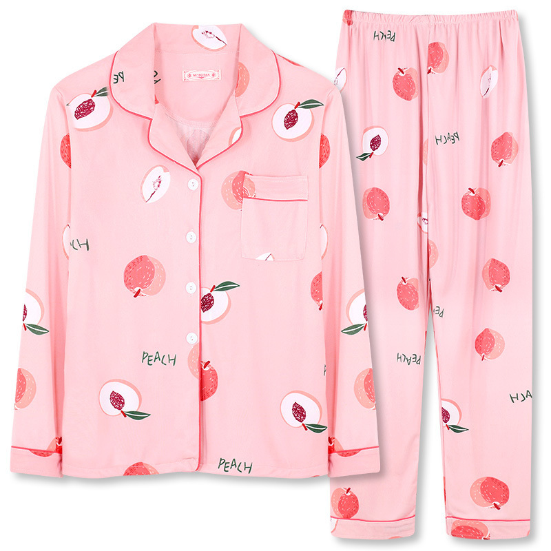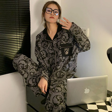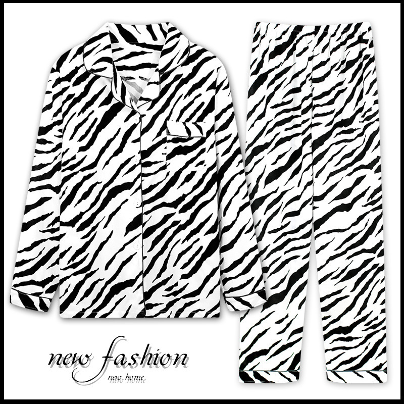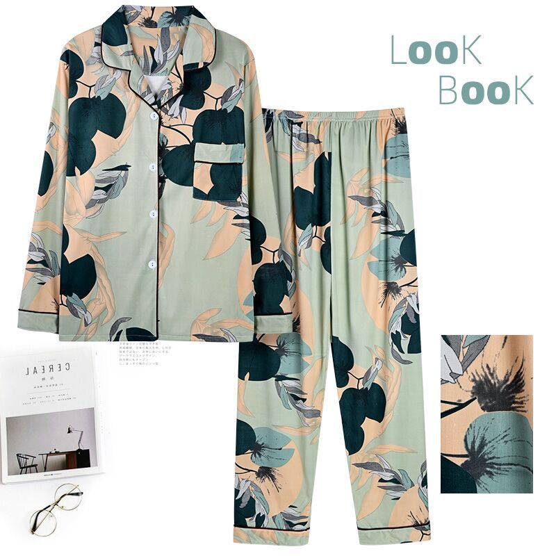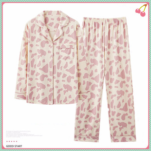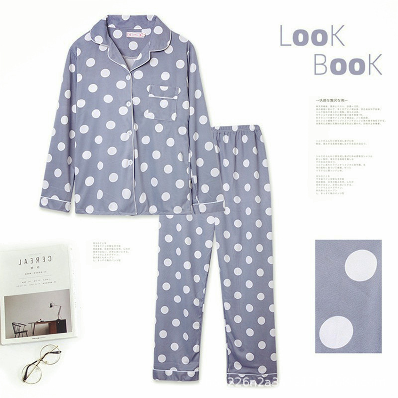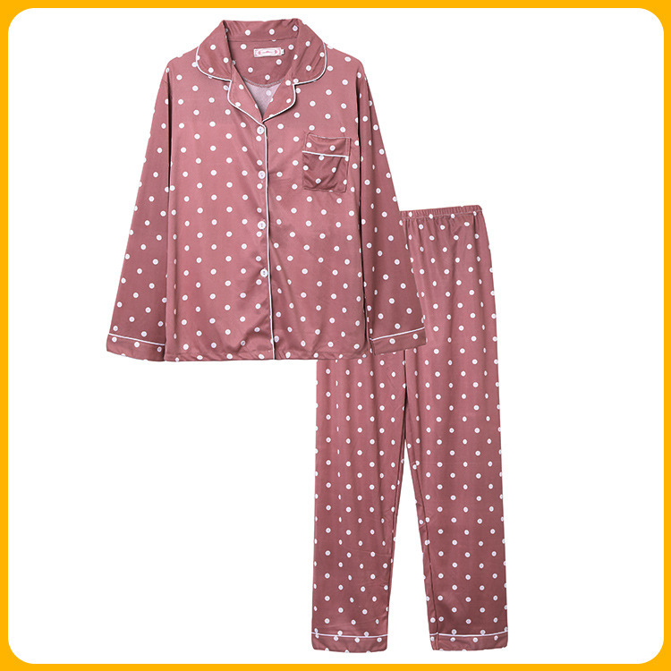 잠옷 여성용 긴팔 바지 대외 무역 홈 세트 옷깃 물방울 무늬 세트 봄과 가을 카디건 밀크 실크 에어컨 세트스토어 가기