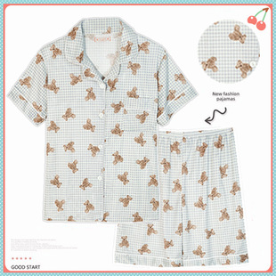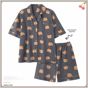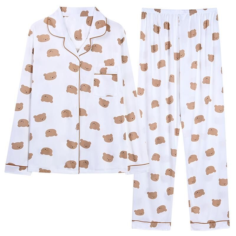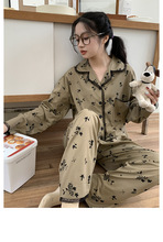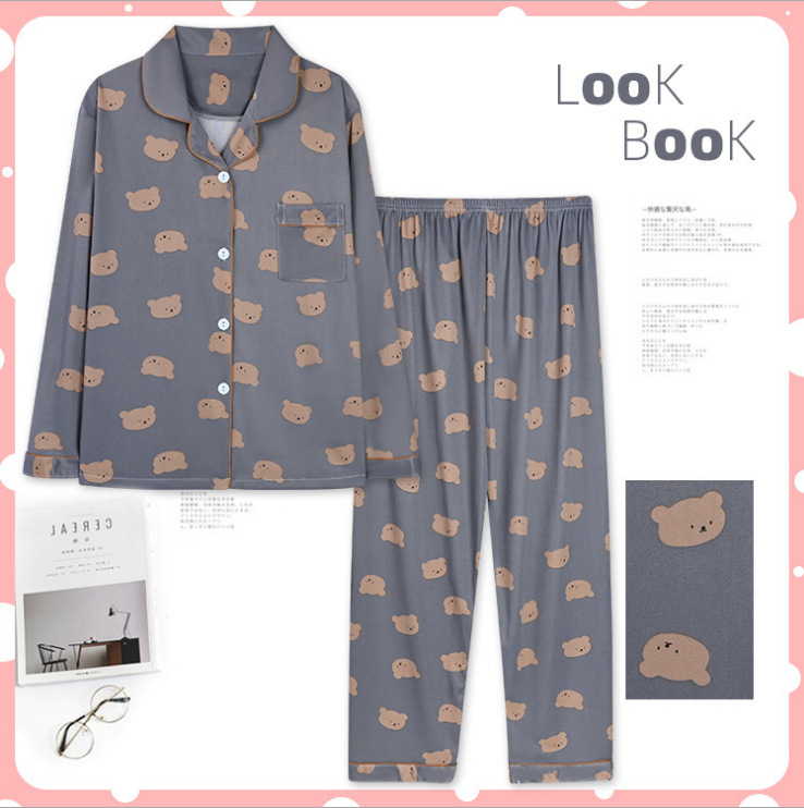 2023插色领小熊初春秋新款网红ins小熊可爱日系长袖睡衣女 家居服