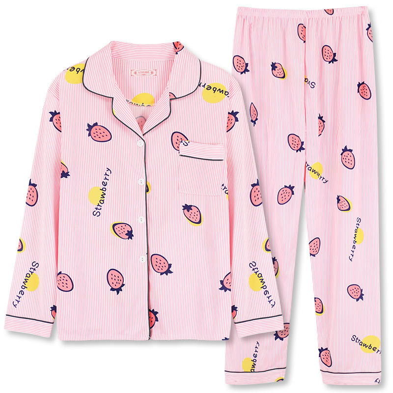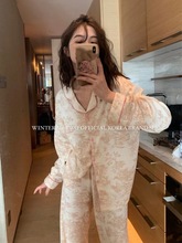 网红ins风睡衣女纯棉薄款春秋季长袖长裤学生休闲家居服 两件套装