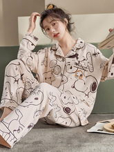 韩版杏色史努比睡衣女2023初春秋新款 网红ins卡通可爱家居服套装