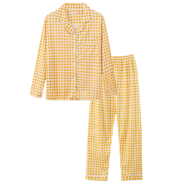 可爱格子小熊长袖长裤睡衣女春秋款网红风学生薄款家居服两件套装