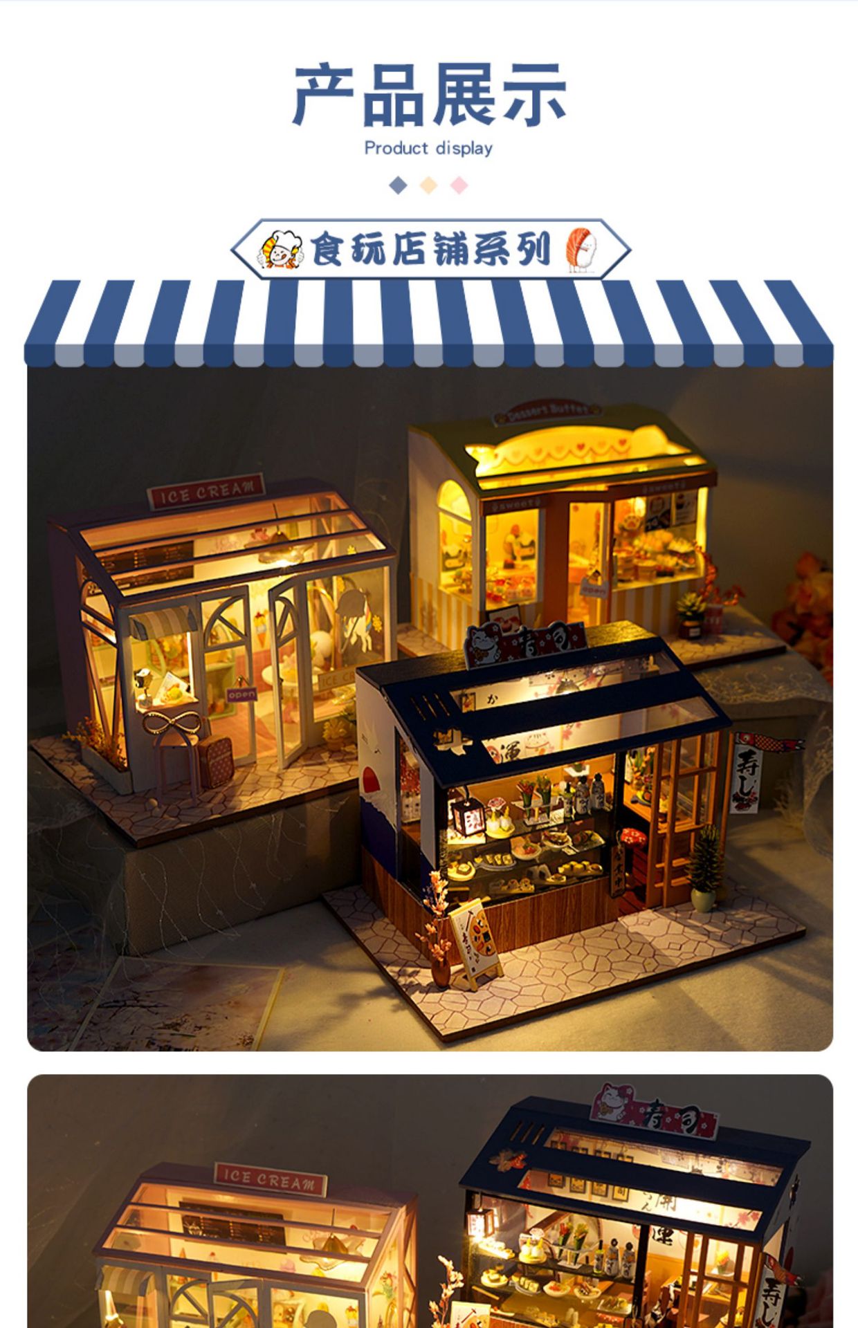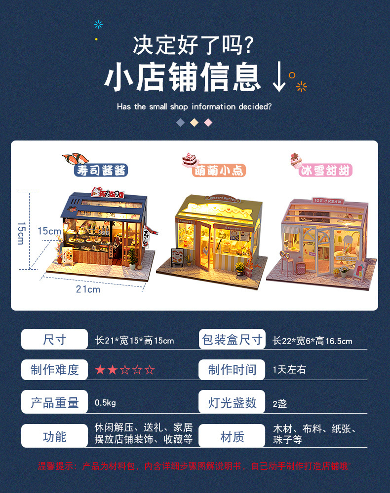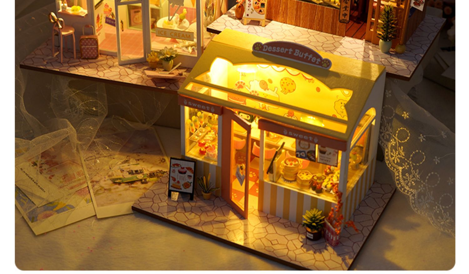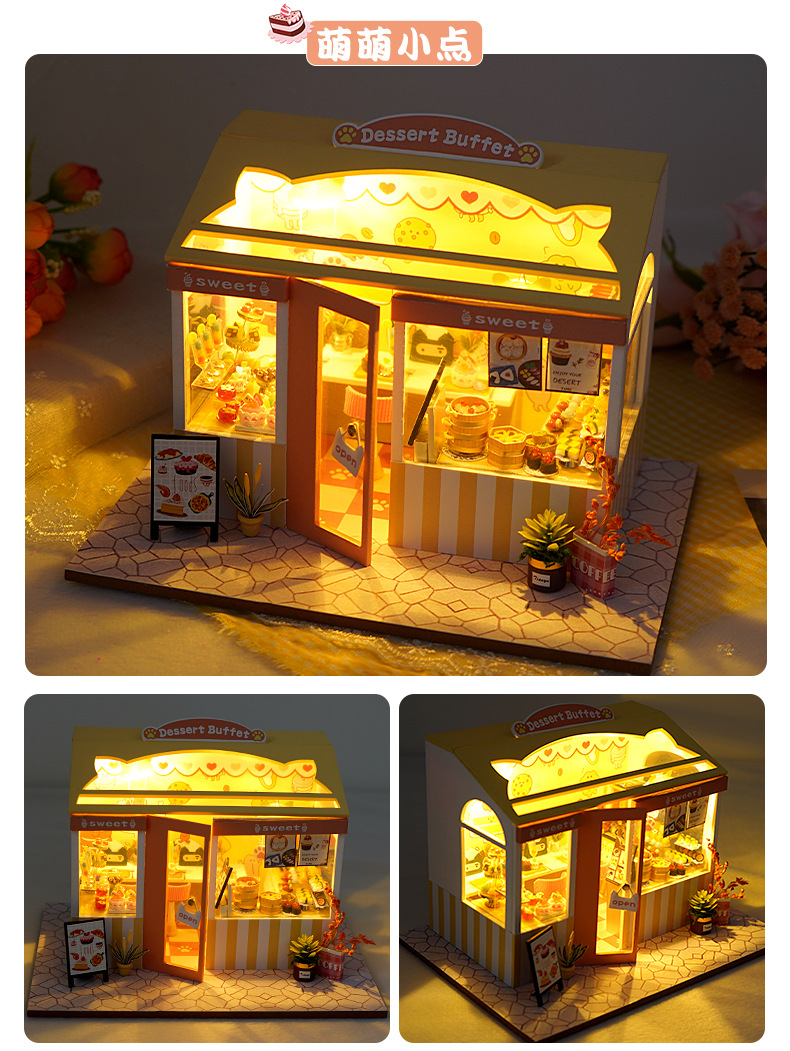 • [클래식 에디션] 연인 케이크 가게 + 도구 + 접착제 + led 빛 + 수동 스위치 Hu Zhao