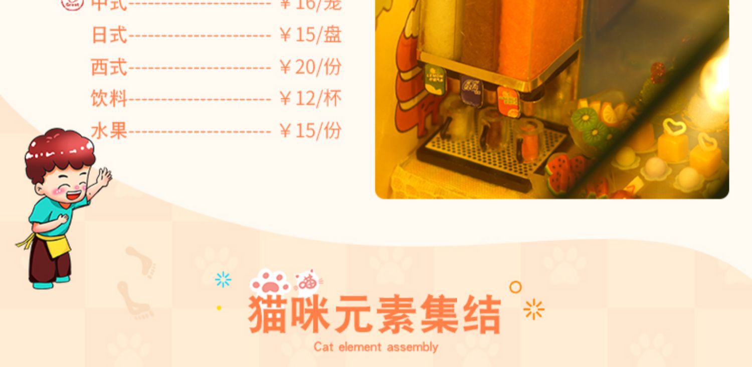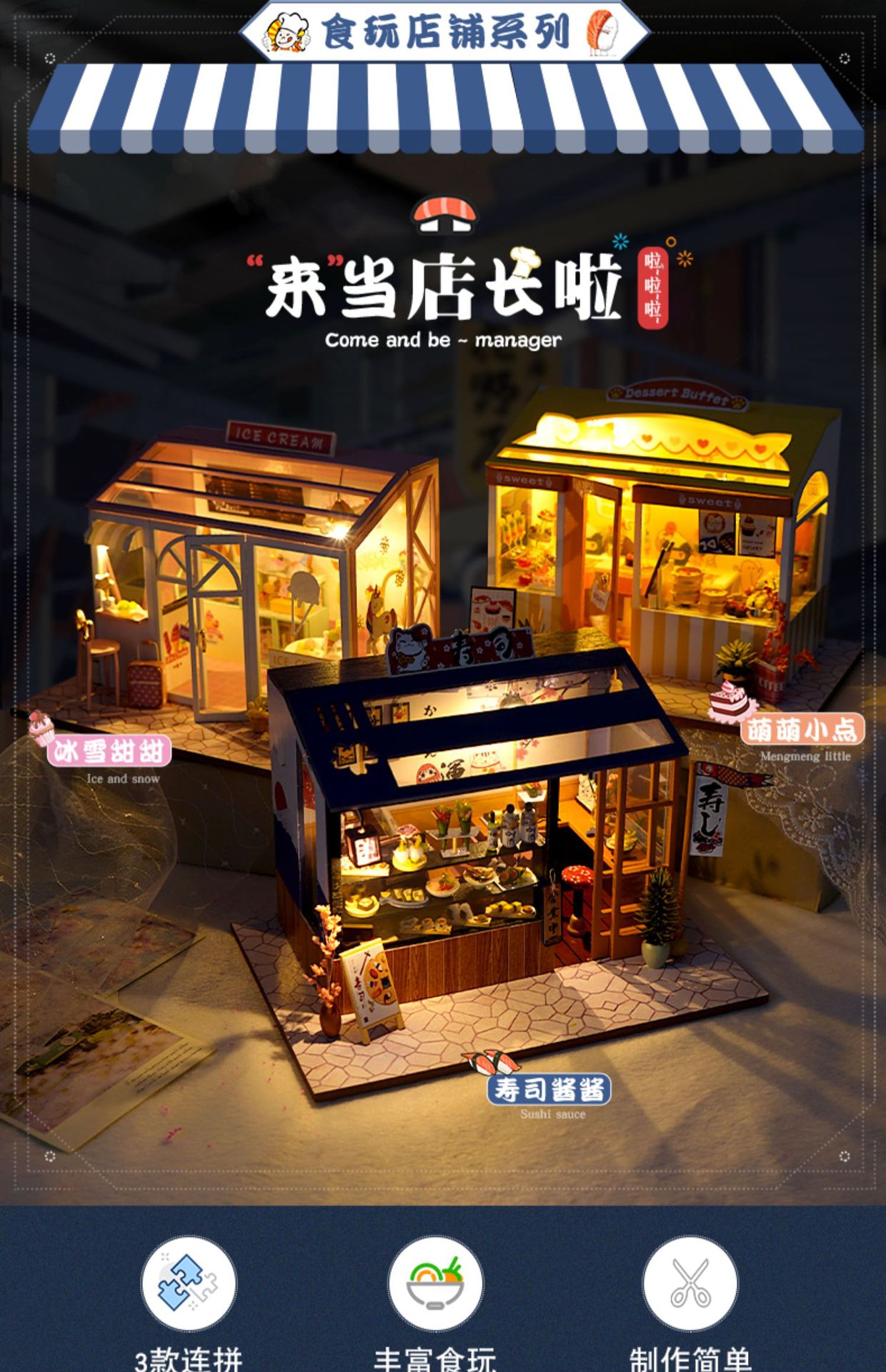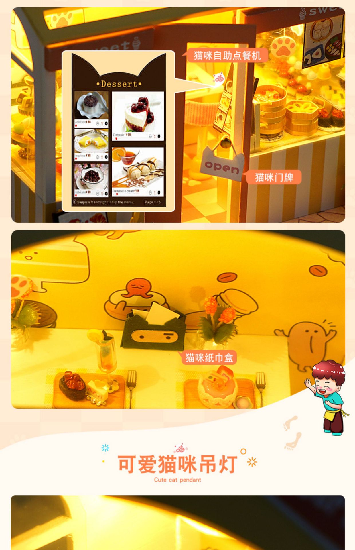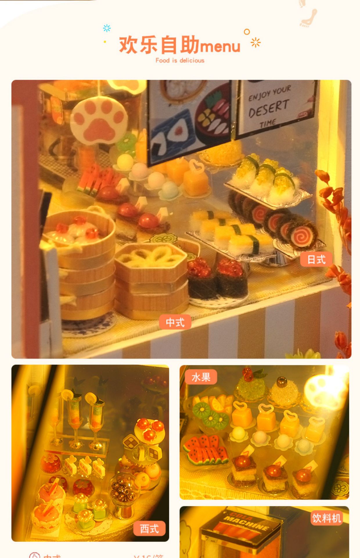 • [클래식 에디션] 연인 케이크 가게 + 도구 + 접착제 + led 빛 + 수동 스위치 Hu Zhao