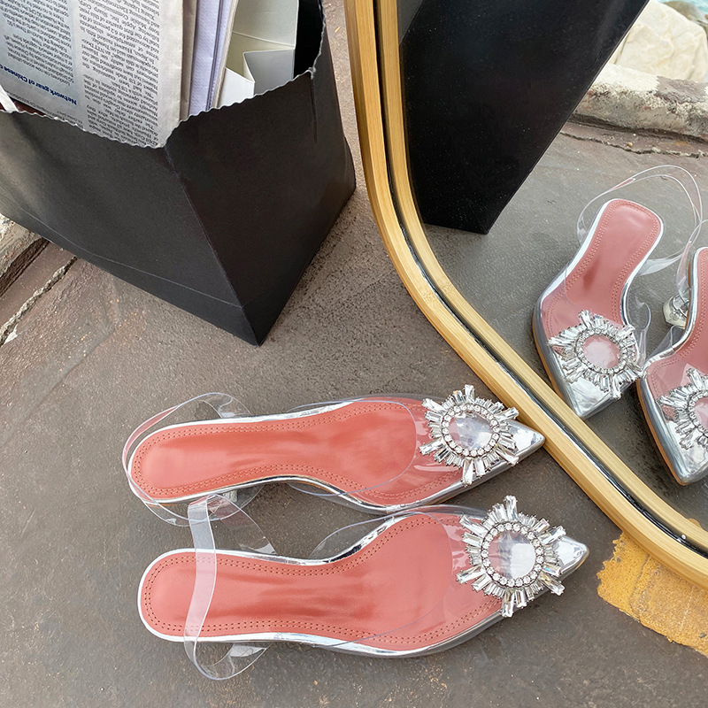 뾰족한 발가락 투명 샌들 여성용 2022 새로운 여름 라인 석 프랑스 하이힐 여성용 스틸레토 힐 페어리 스타일 여성 신발스토어 가기