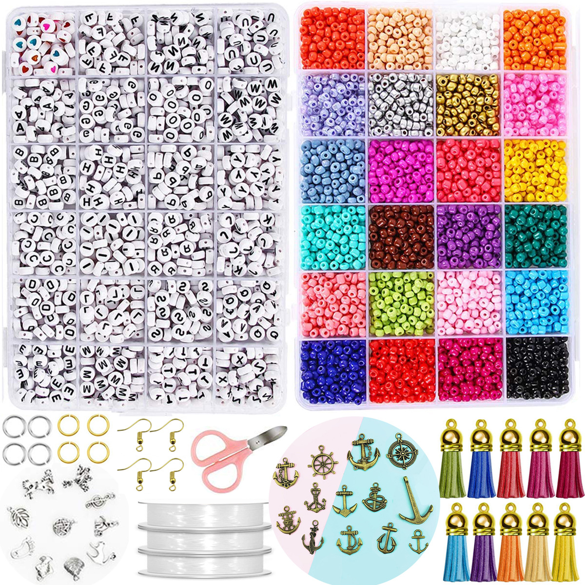 • 2mm 쌀 구슬 15000 개, 문자 구슬 1200 개. 총 16200PC