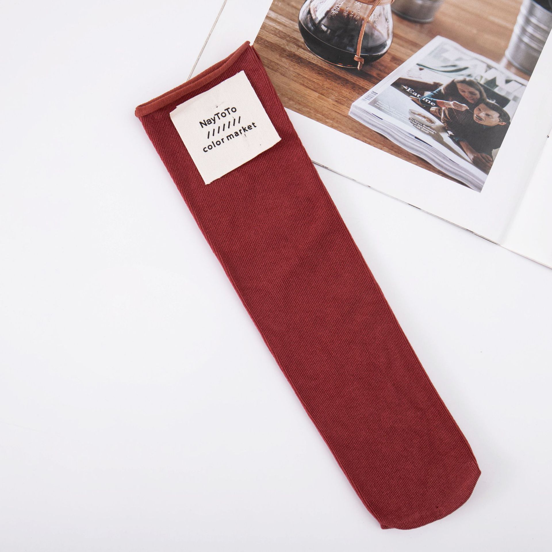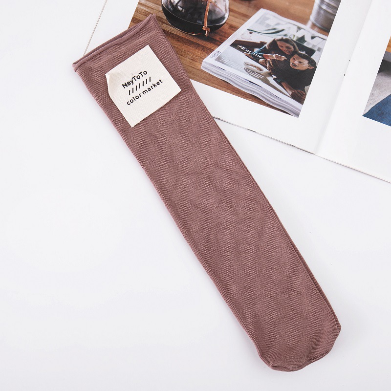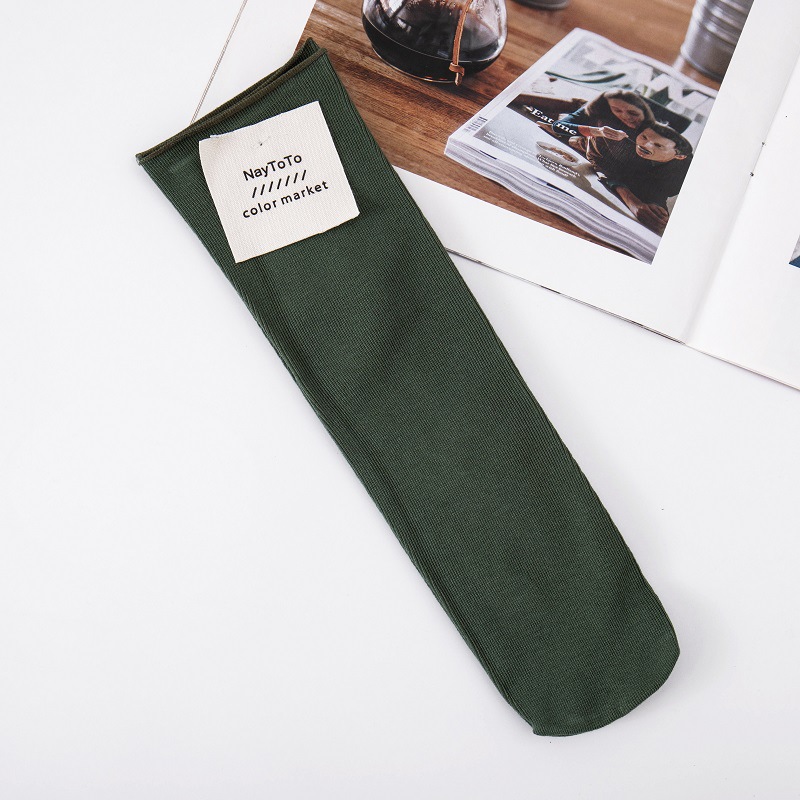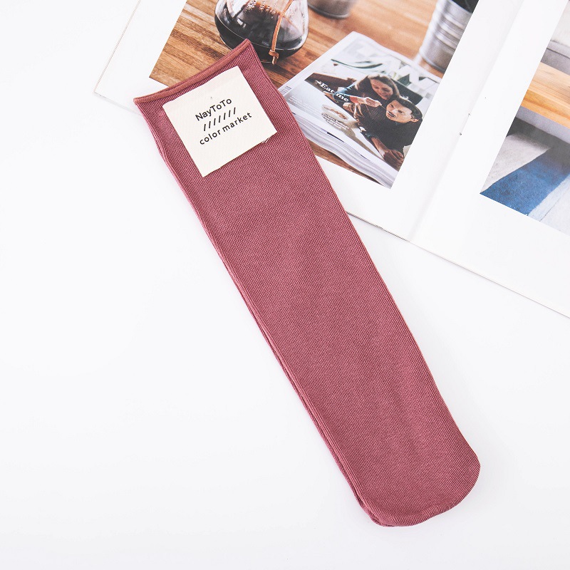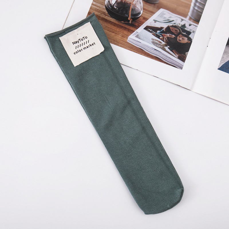 양말 여성용 모란디 컬러 한국 말린 스트레이트 플레이트 뿌리 없는 더미 양말 사탕 색상 일본식 천 라벨 중간 튜브 양말스토어 가기