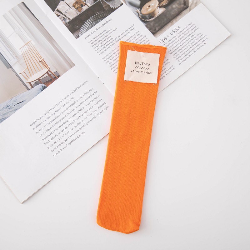 양말 여성용 모란디 컬러 한국 말린 스트레이트 플레이트 뿌리 없는 더미 양말 사탕 색상 일본식 천 라벨 중간 튜브 양말