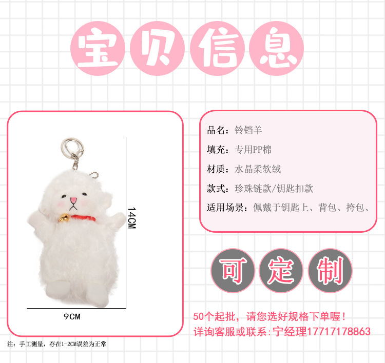 도매 크리스마스 작은 양자리 장난감 봉제 인형 가방 펜던트 벨 양 여성 열쇠 고리 매달려 장식품스토어 가기