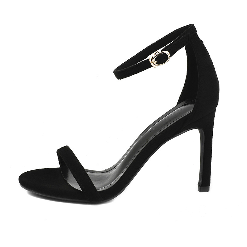 블랙 원라인 버클 샌들 2024 신상 여름 인기 하이힐 여성화 슬림힐 요정풍 다용도 한국 스타일
