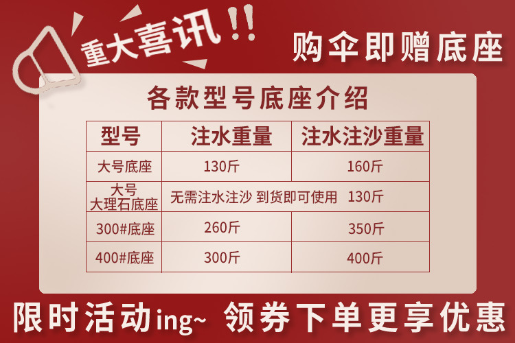 • 작은 로마 우산 2.5m 사각 램프 구슬 + 대형 물과 모래가 채워진 베이스