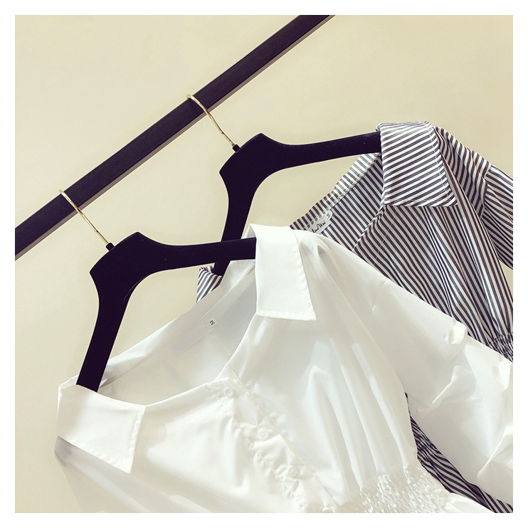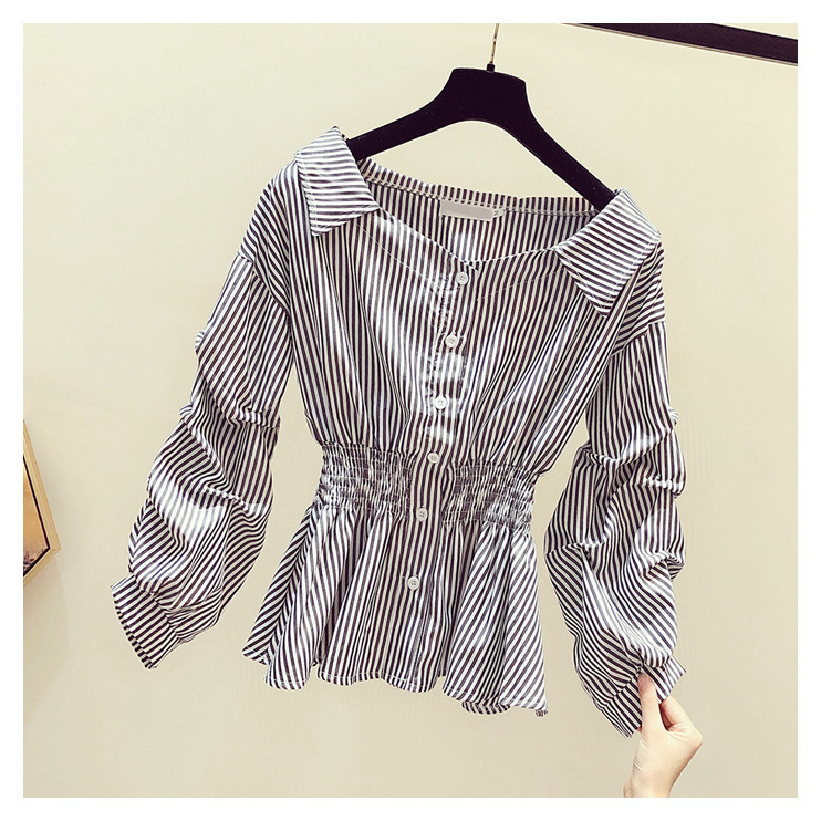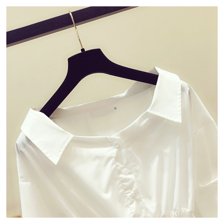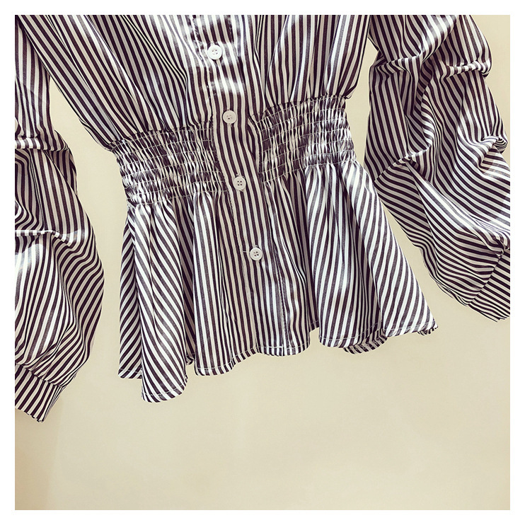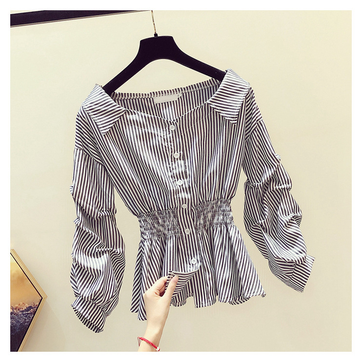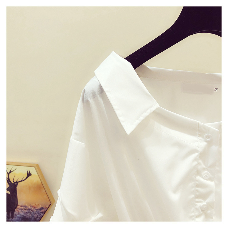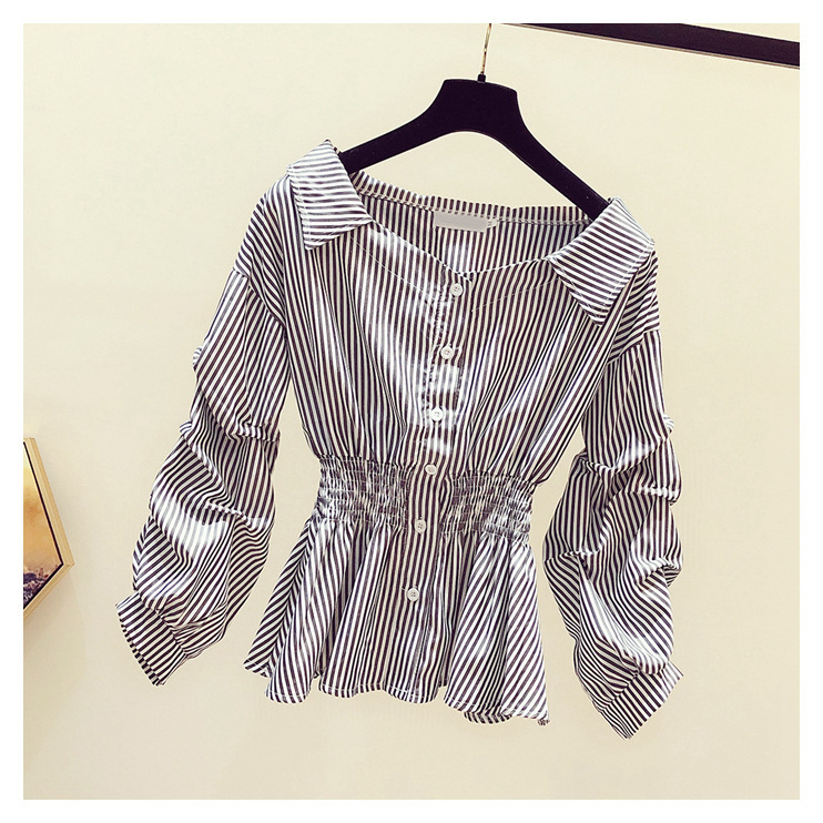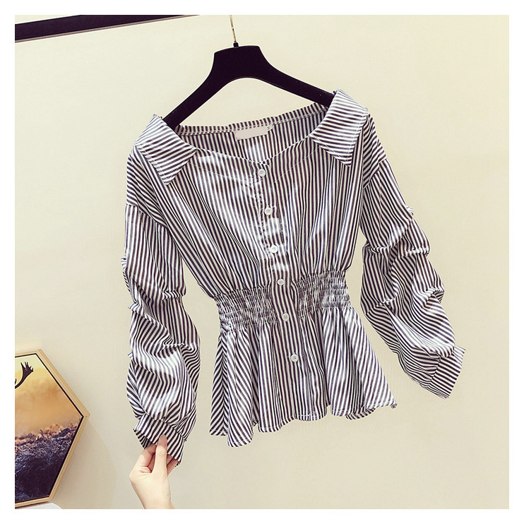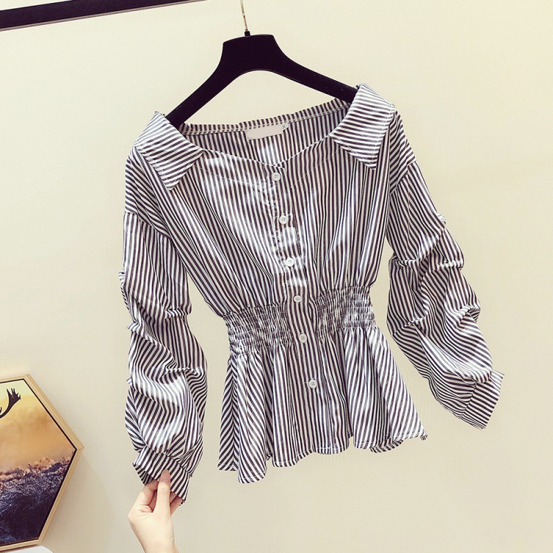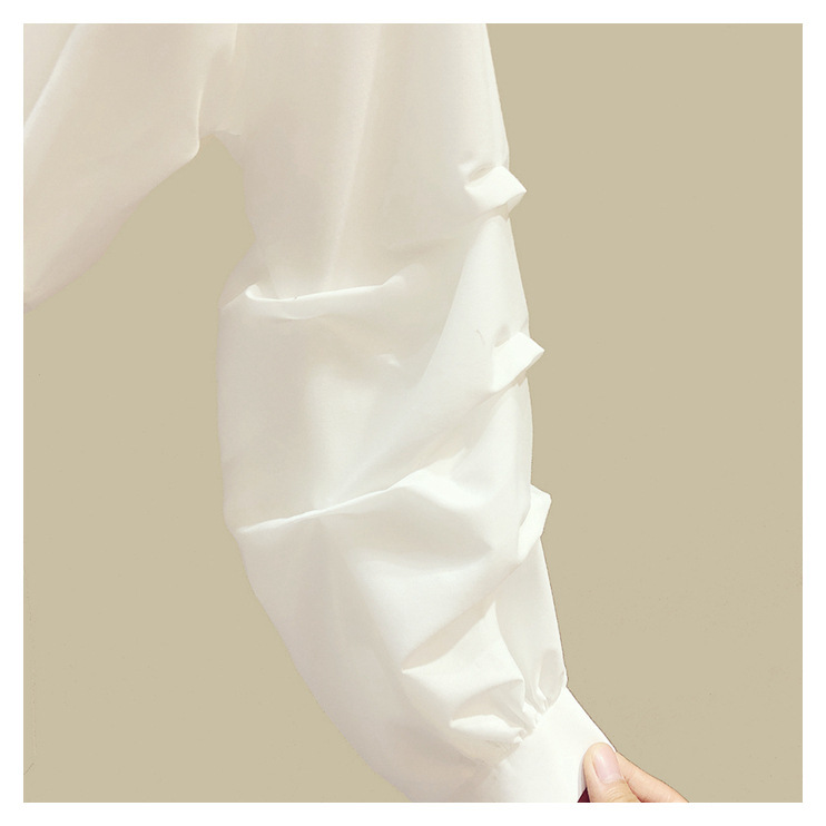 2025 봄/가을 루즈핏 오프숄더 허리라인 강조 셔츠 한국 스타일 브이넥 여성용 흰색 셔츠 퍼프 소매스토어 가기