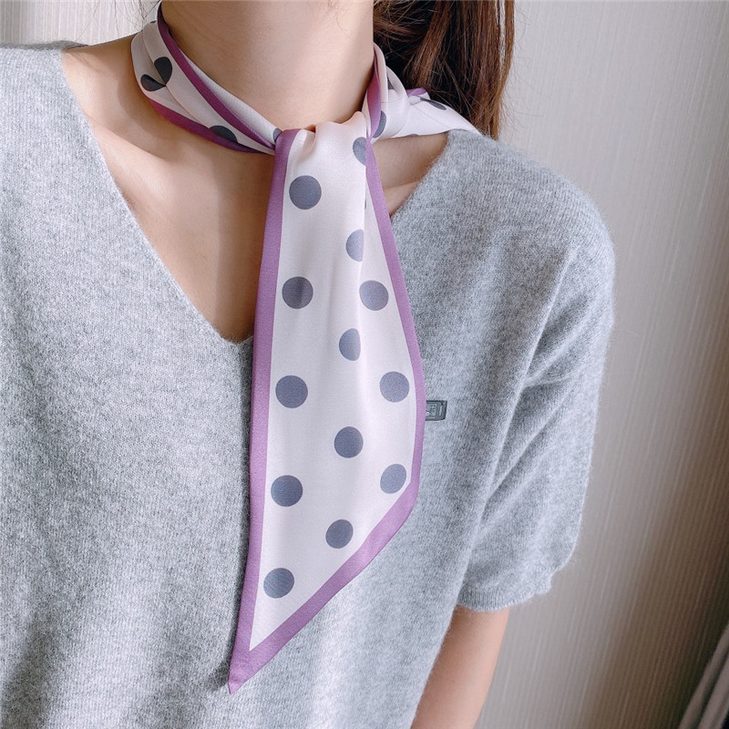 한국 스타일 물방울 무늬 날씬한 우아한 작은 스카프 긴 스카프 여성용 양면 리본 이른 봄 액세서리 헤어 밴드