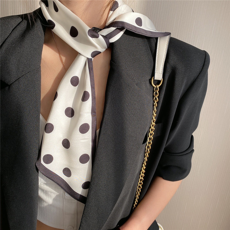한국 스타일 물방울 무늬 날씬한 우아한 작은 스카프 긴 스카프 여성용 양면 리본 이른 봄 액세서리 헤어 밴드스토어 가기