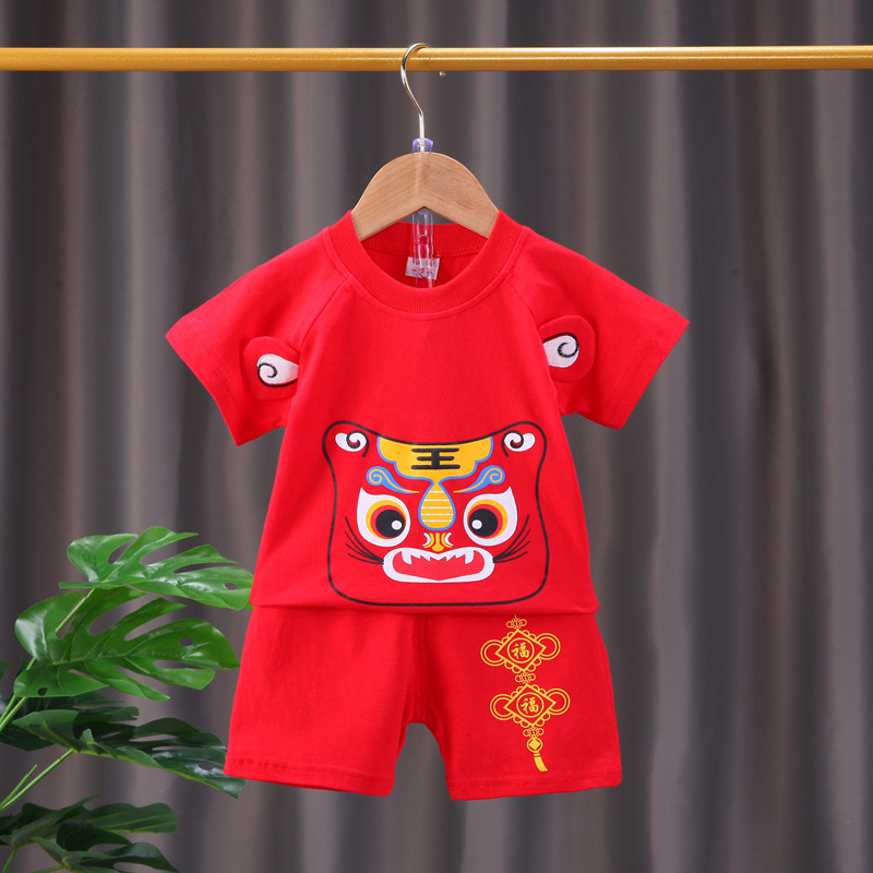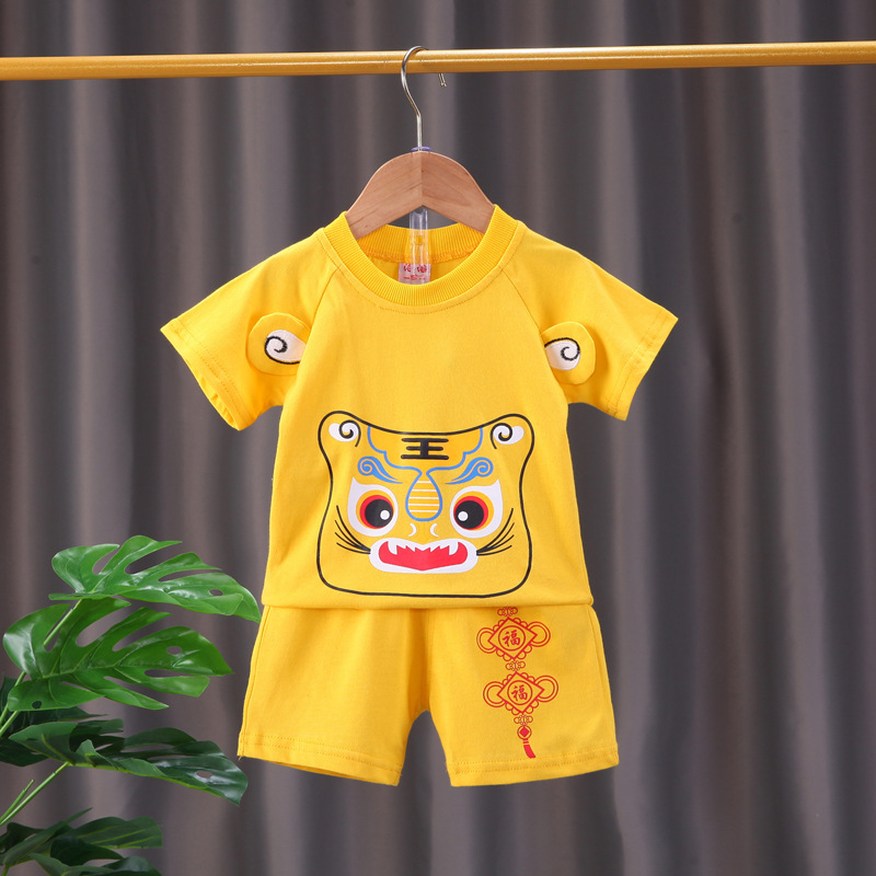 어린이 당나라 세트 남자의 아기 여름 중국 스타일 소년 반팔 세트 아기 옷 복고풍 Hanfu 머리카락의 세대