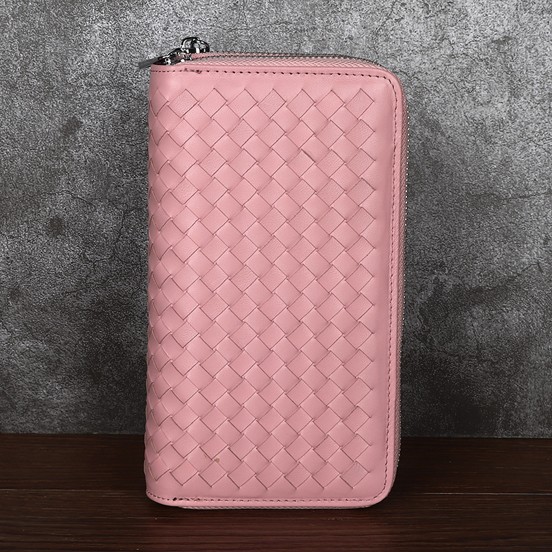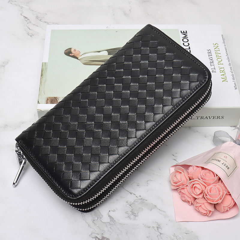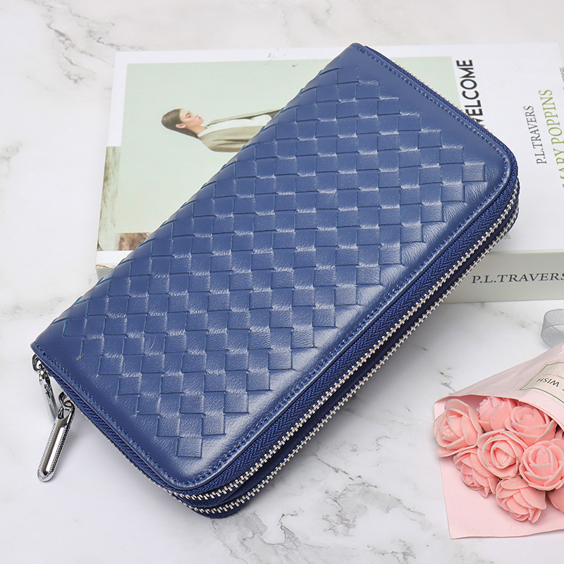 유럽과 미국 패션 여성용 긴 지갑 여성용 정품 가죽 양가죽 손으로 짠 장기 카드 가방 RFID 자기 방지 지퍼 가방
