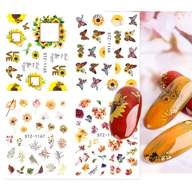 봄과 여름의 국경 간 새로운 네일 아트 스티커 작은 신선한 꽃 나비 꽃 중간 워터 마크 네일 스티커스토어 가기