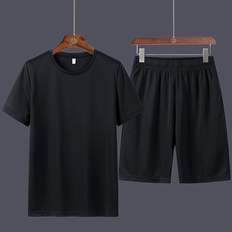 여름 남성 스포츠 세트 캐주얼 반바지 새로운 라운드 넥 티셔츠 느슨한 모든 매치 반 소매 유행 얇은 반팔