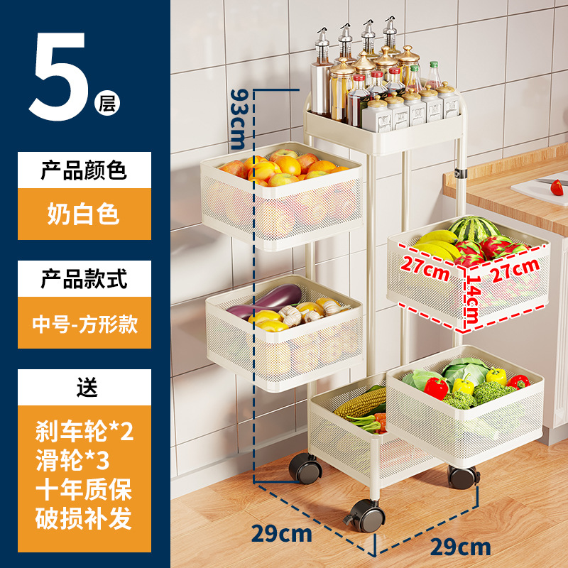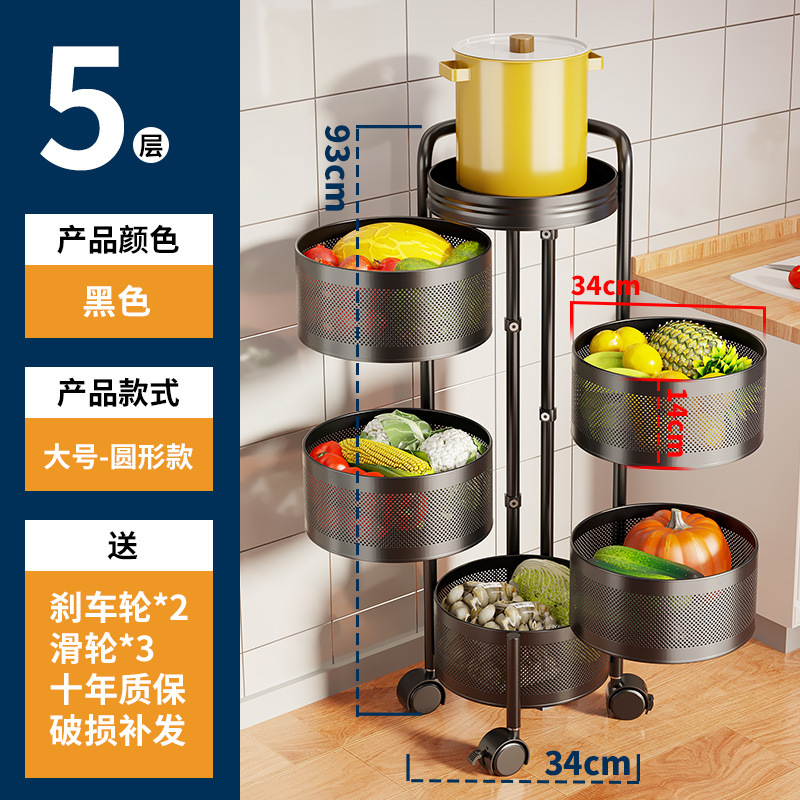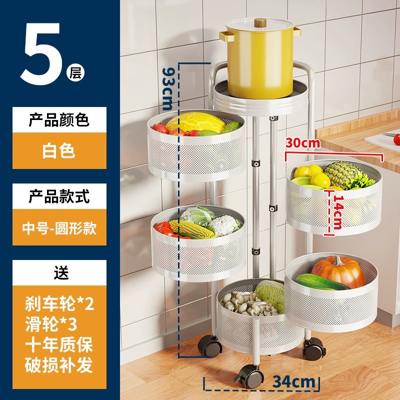 • 라운드 5 층 총 그레이-[업그레이드 된 야채 바구니 이동식] 매체