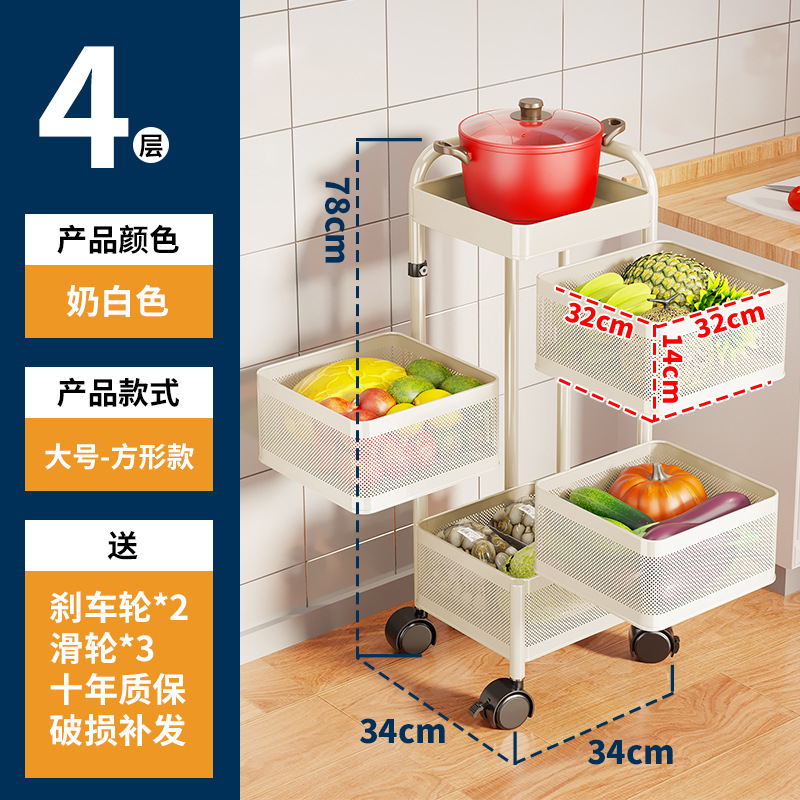 • 사각형-4 층 (이동식 바구니)) 우유 흰색 큰
