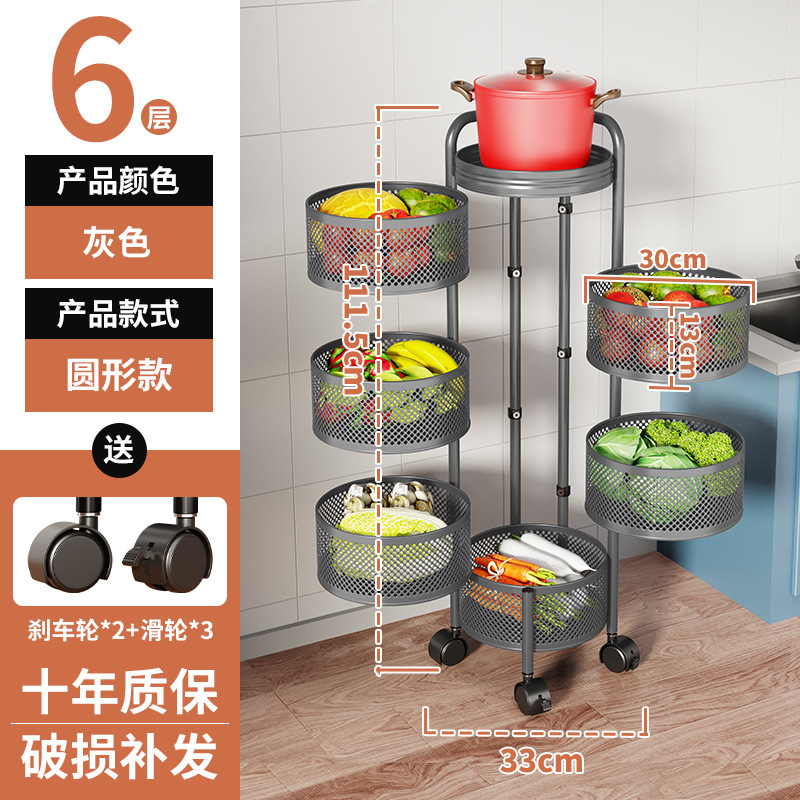 • 라운드 6 층 총 그레이-[업그레이드 된 야채 바구니 이동식] 매체