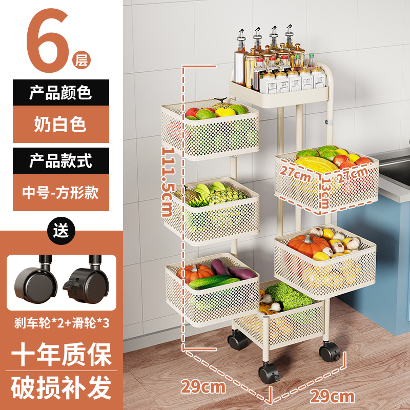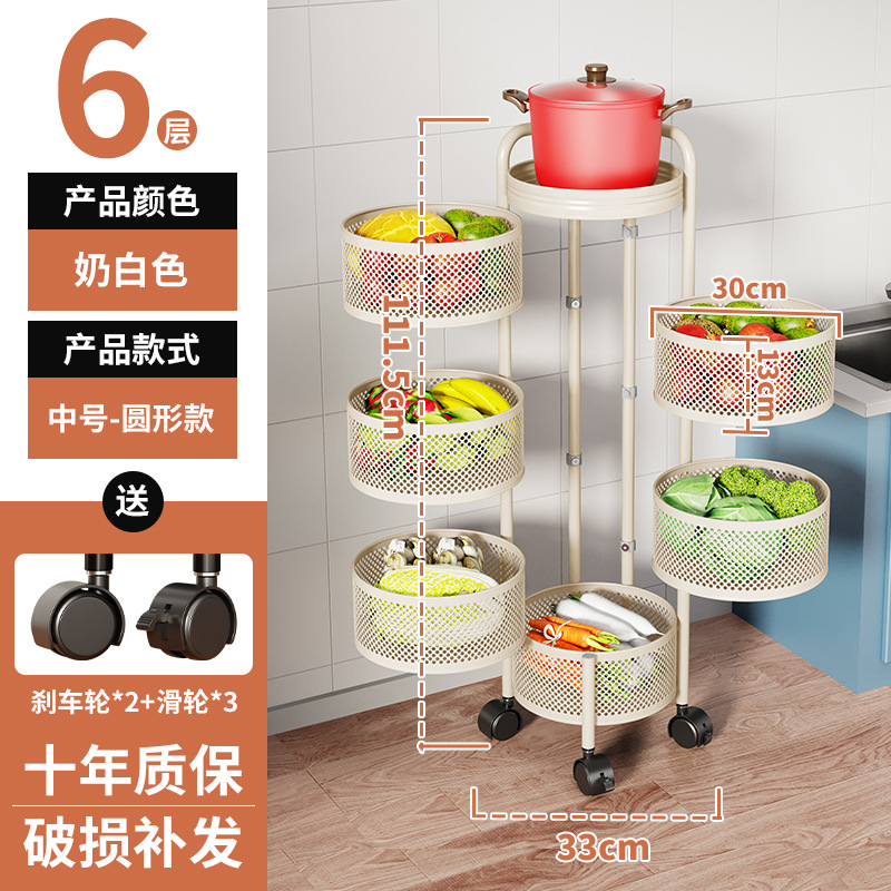 • 둥근 6 층 우유 화이트-[이동식 업그레이드 야채 바구니] 중간