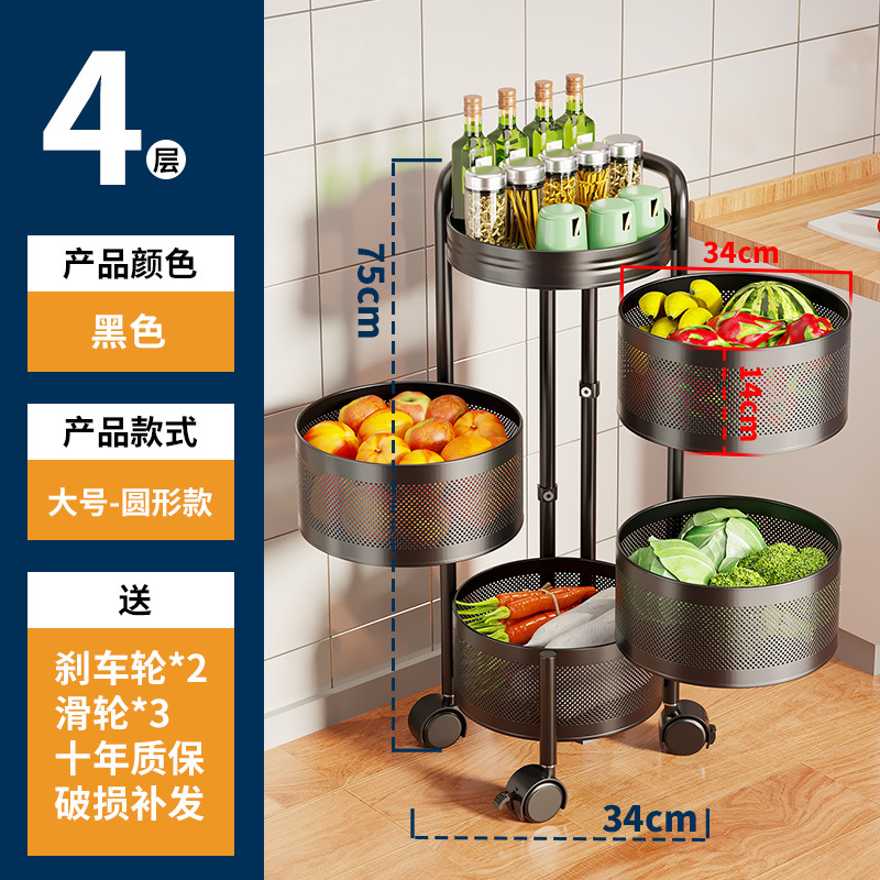 • 라운드 4 층 총 그레이-[업그레이드 된 야채 바구니 이동식] 매체