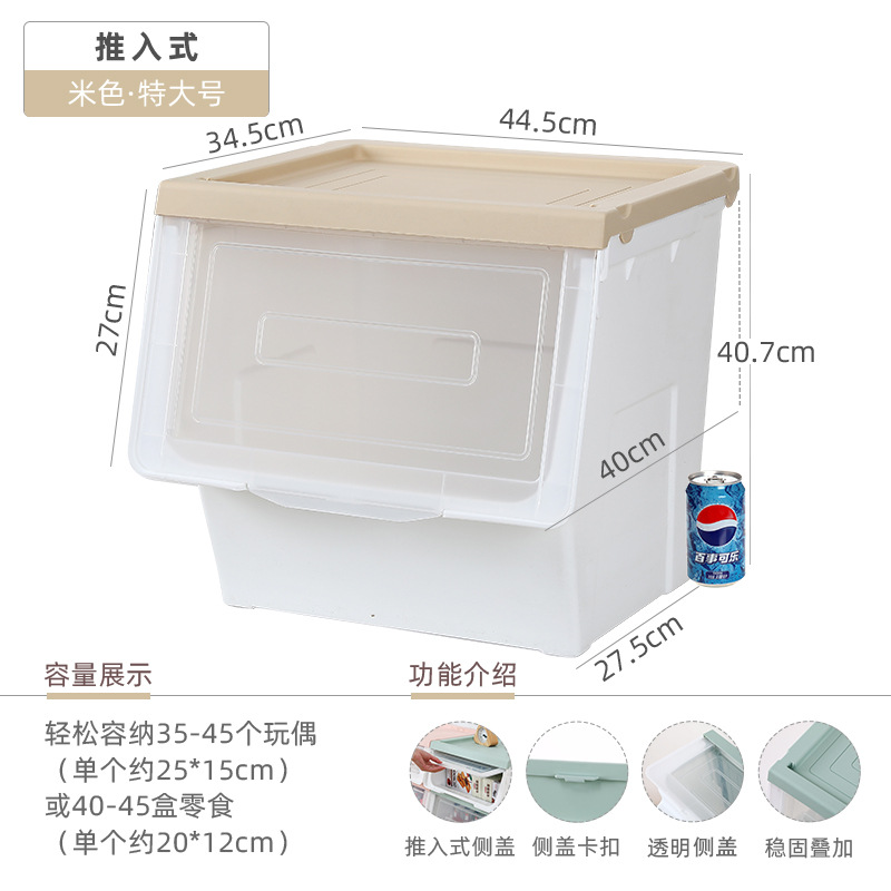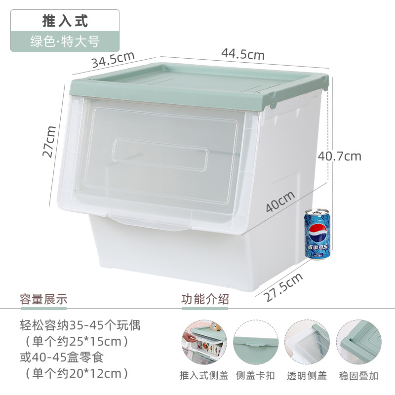 Younai 가정용 푸시형 어린이 장난감 보관 상자 투명 플립 보관 캐비닛 측면 개방형 아기 간식 보관 상자