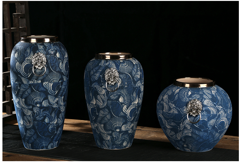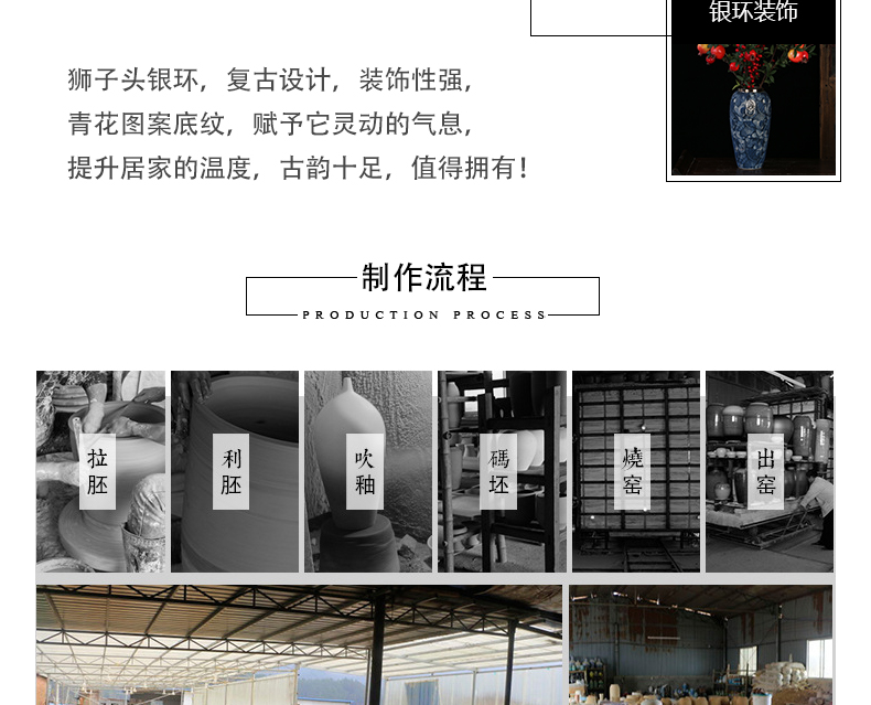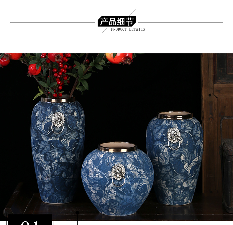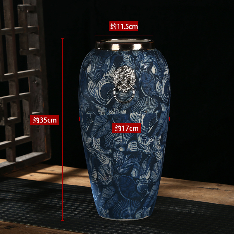 Jingdezhen 세라믹 꽃병 장식품 거실 꽃 정렬 골동품 파란색과 흰색 도자기 빈티지 말린 꽃병 가정 장식스토어 가기
