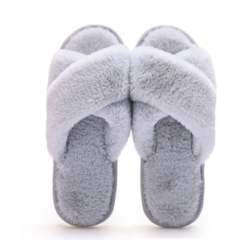 새로운 크로스 보더 유럽 및 미국 실내 플러시 크로스 푹신한 슬리퍼 여성용 귀여운 심플한 홈 따뜻한 플랫 코튼 슬리퍼