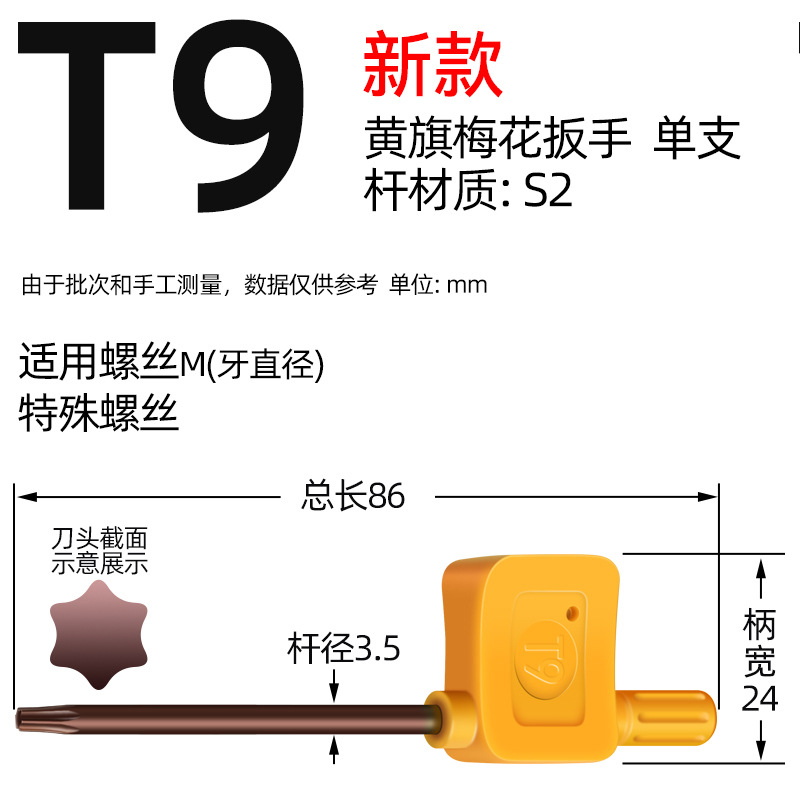 • 새로운 깃발 유형 링 렌치 T8 (노란색 깃발)