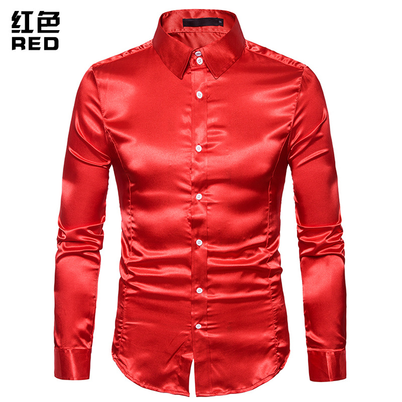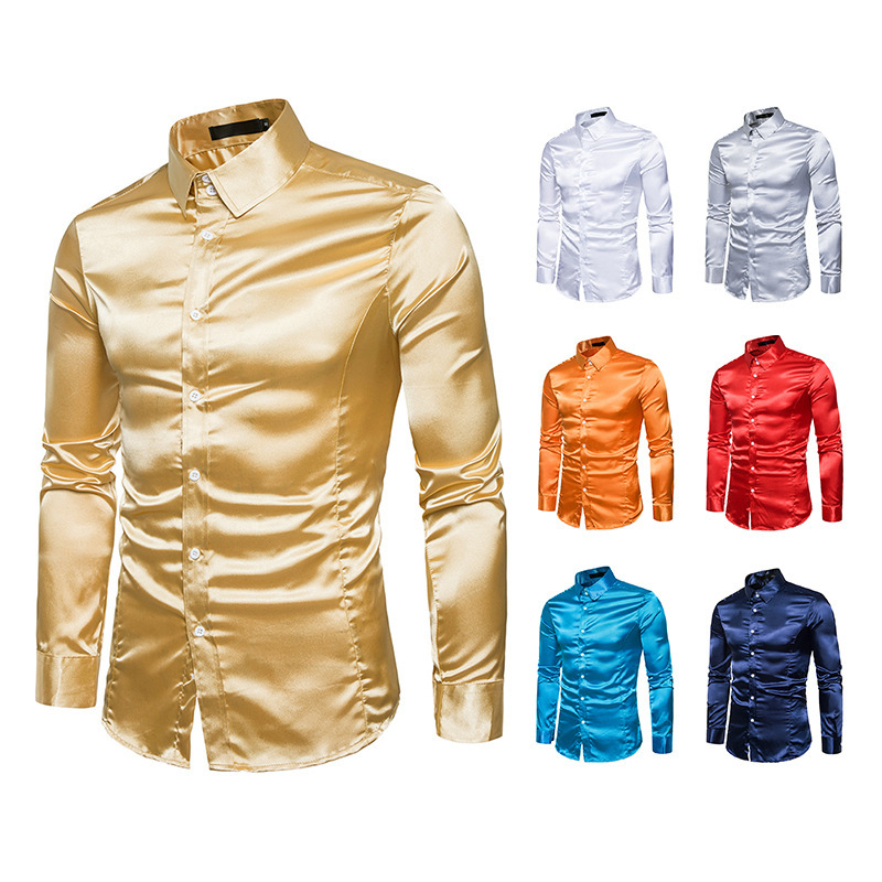대외 무역 도매 유럽 사이즈 남성 하이 퀄리티 캐주얼 패션 밝은 긴 소매 옷깃 셔츠 A35스토어 가기