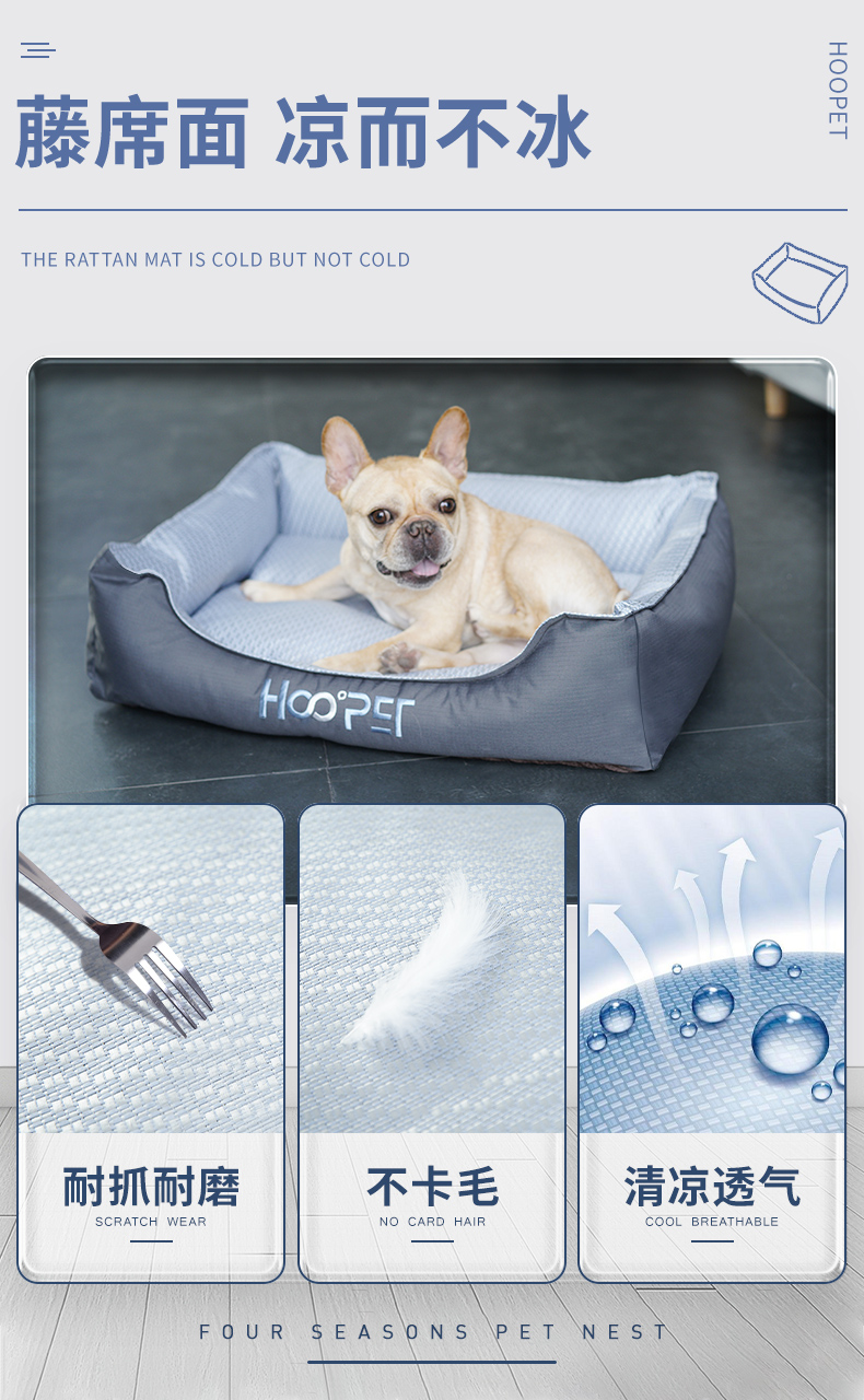 【品名】:灰蓝绣花冰藤席夏款窝 (XS/S/M/L/XL)