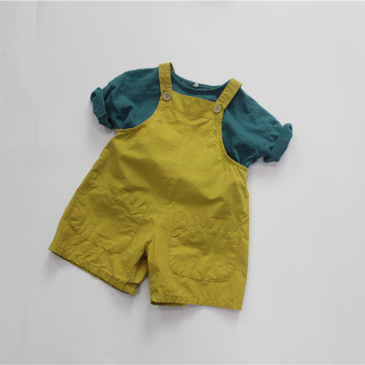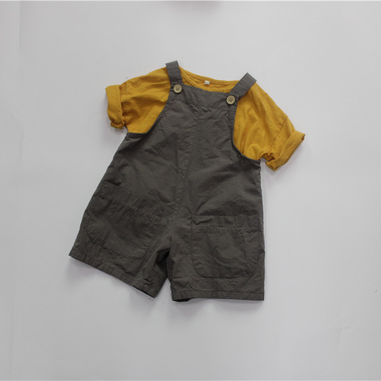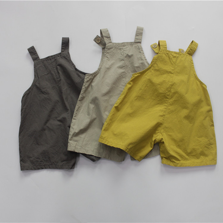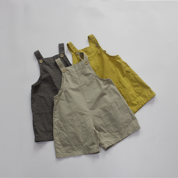 여름 아동용 멜빵바지 한국 스타일 남아용 반바지 루즈핏 민소매 원피스 외출복 여아용 바지 A급 단색스토어 가기