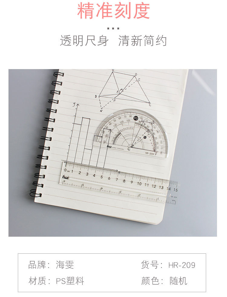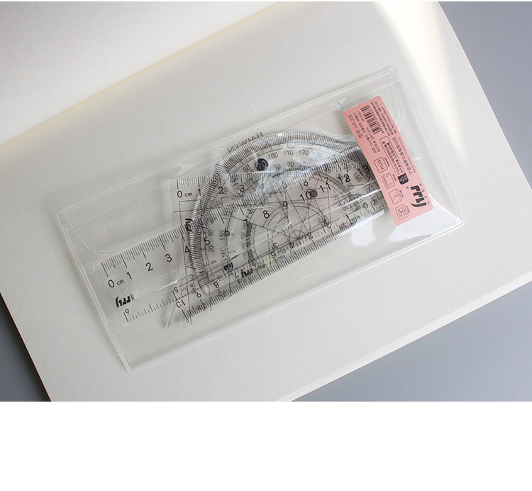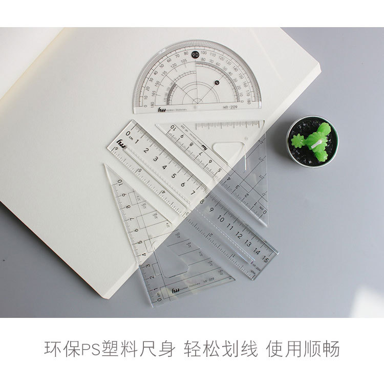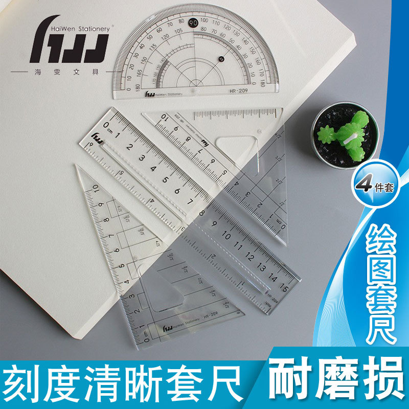 Haiwen 세트 눈금자 4 피스 눈금자 삼각형 눈금자 각도기 학생 투명 시험 기하학적 도구 웨이브 눈금자스토어 가기