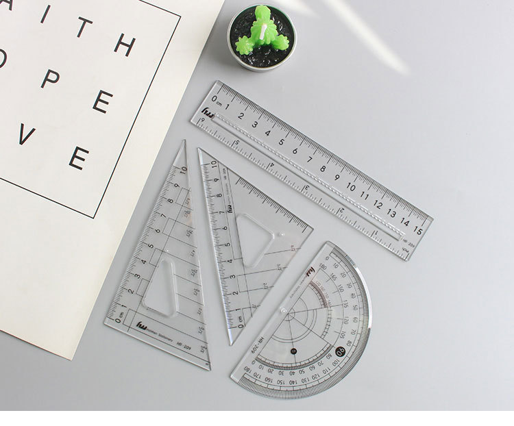 Haiwen 세트 눈금자 4 피스 눈금자 삼각형 눈금자 각도기 학생 투명 시험 기하학적 도구 웨이브 눈금자