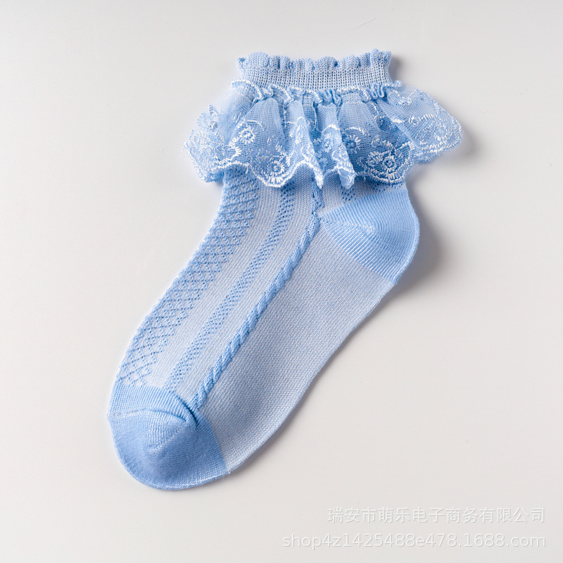 어린이 레이스 레이스 양말 봄과 여름 얇은 메쉬 통기성 화이트 댄스 양말 단색 소녀 학생 양말 도매