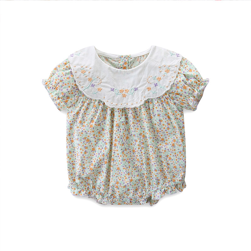 2023 여름 새로운 신선한 인쇄 자수 삼각형 등반 세트 신생아 여자의 아기 가방 방귀 세트 멋진 통기성 2225