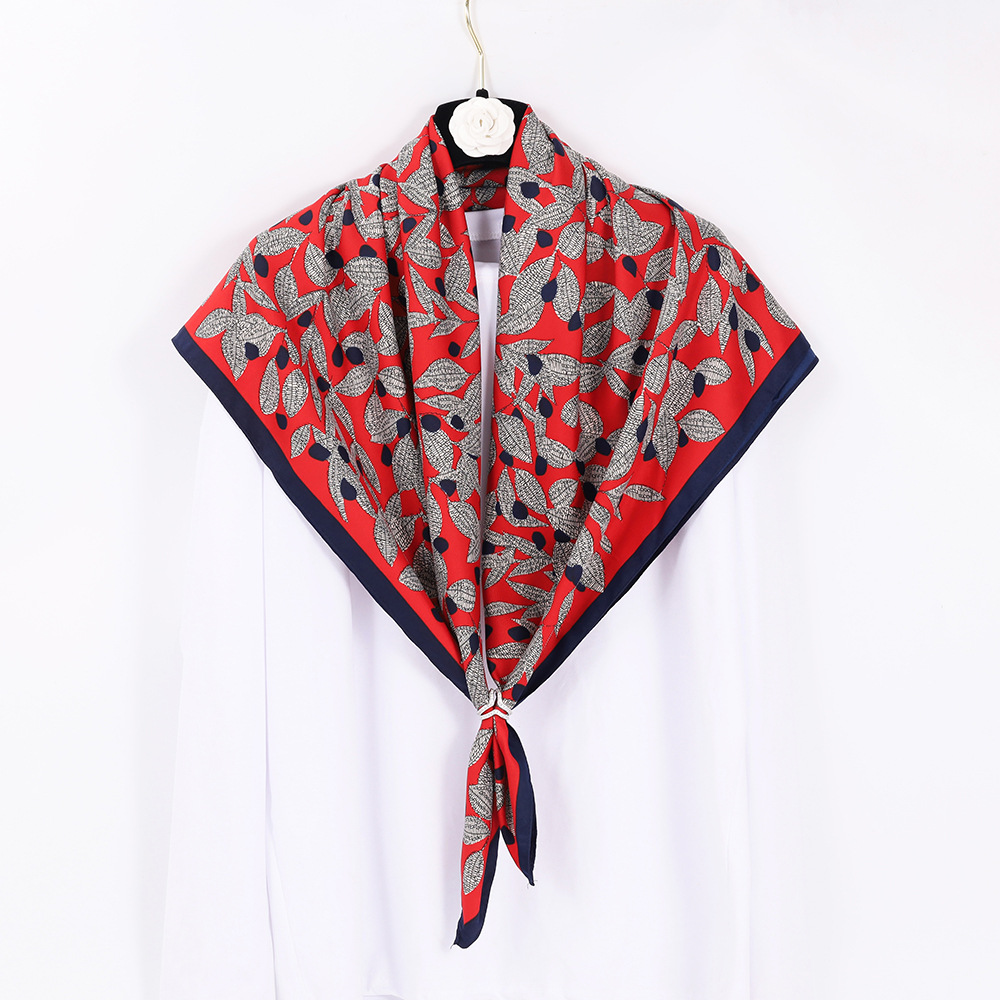 가을과 겨울 따뜻한 스카프 목도리 우아한 잎 인쇄 스카프 90*90cm 능직 새틴 스카프 어머니 선물