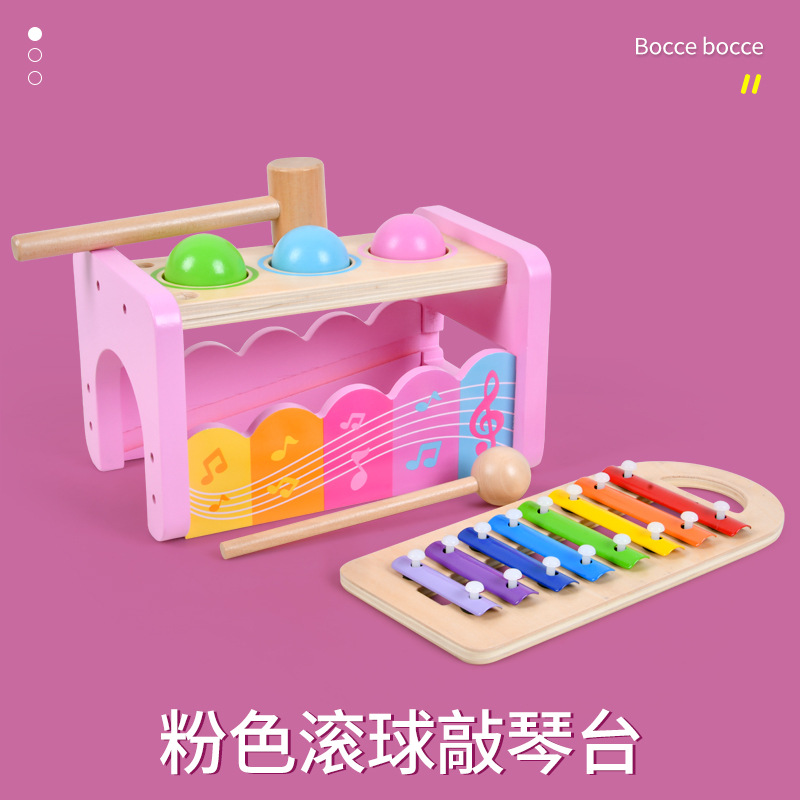 어린이 조기 교육인지 음악 노크 테이블 8 톤 노크 피아노 롤링 볼 게임 손과 눈 협응 교육용 대화 형 장난감