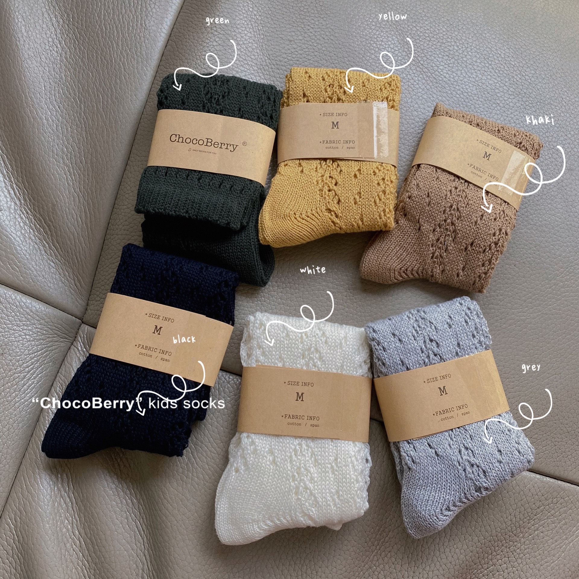 W20AW-0062 미드 튜브-모리 트랜스퍼 링/2025 여름 한국 여름 중공 얇은 어린이 양말