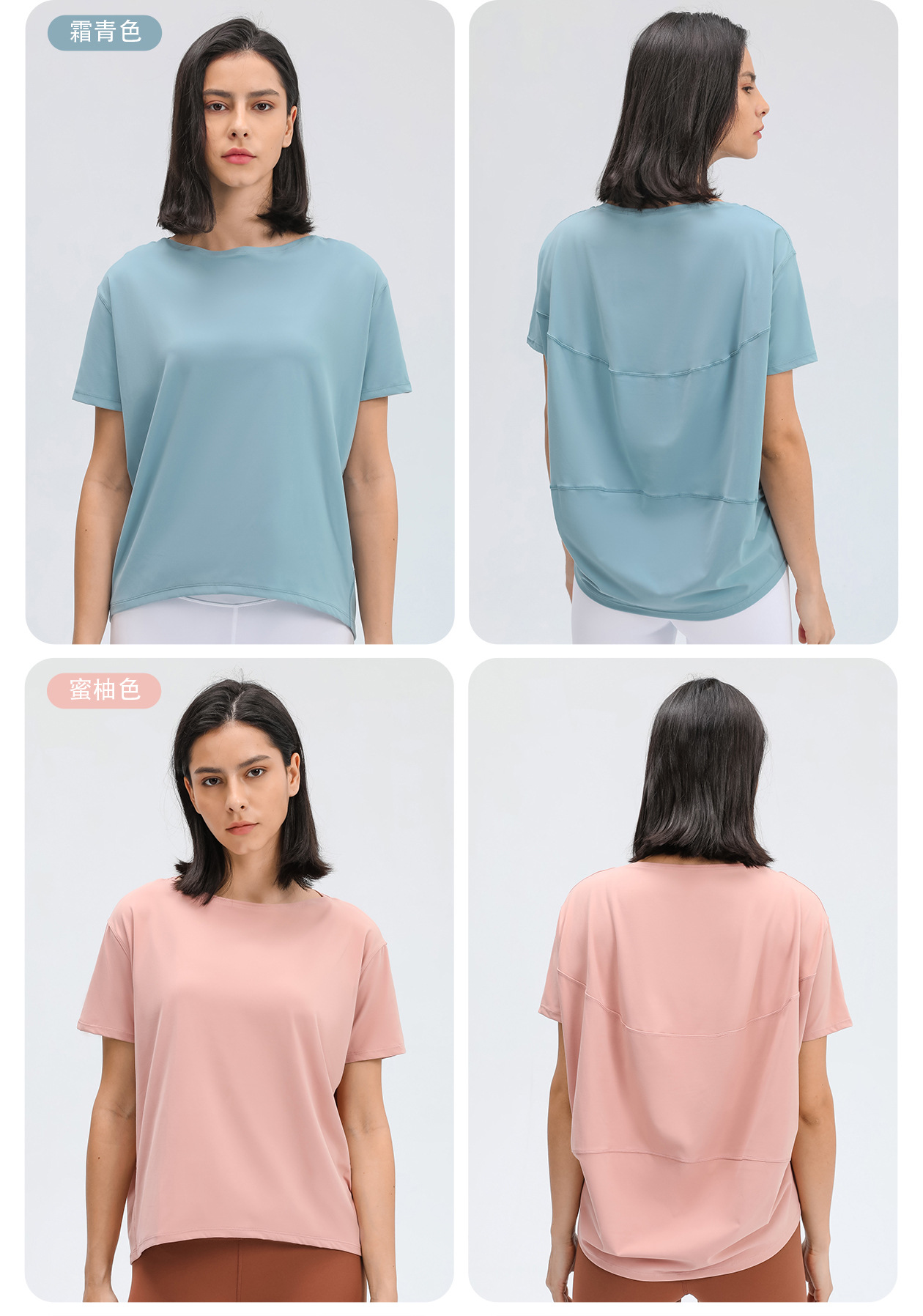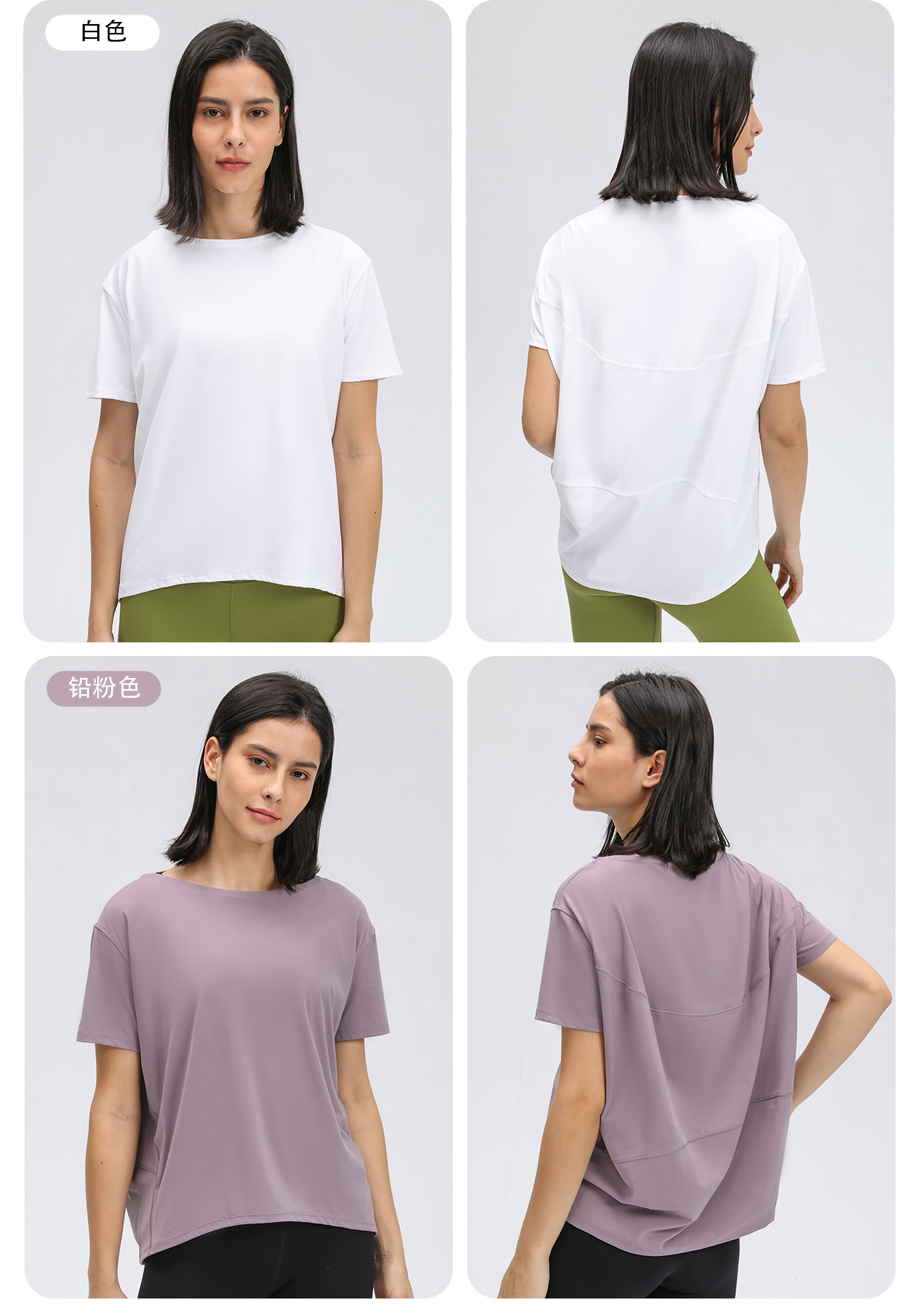 새로운 통기성 높은 탄성 모든 매치 느슨한 반팔 단색 티셔츠 러닝 스포츠 피트니스 요가 의류