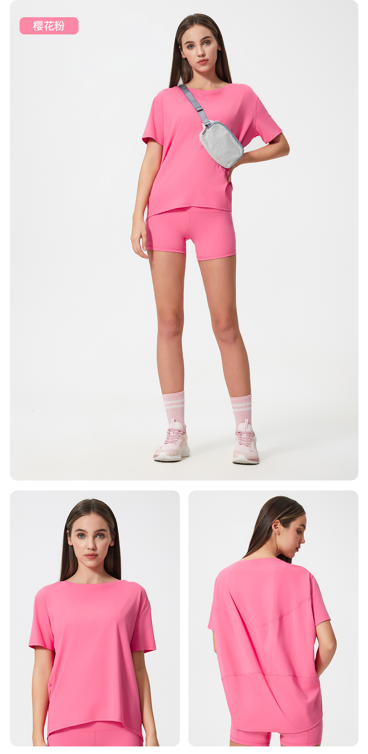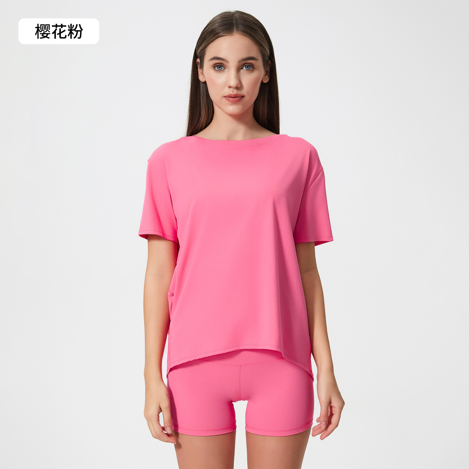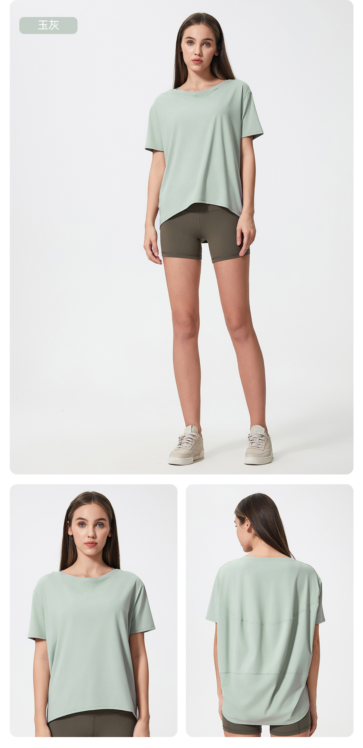 새로운 통기성 높은 탄성 모든 매치 느슨한 반팔 단색 티셔츠 러닝 스포츠 피트니스 요가 의류스토어 가기
