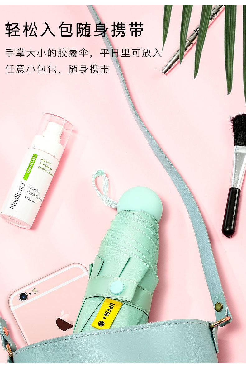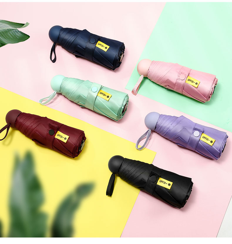 다섯 접힌 우산 8 본 블랙 접착제 접는 캡슐 써니 우산 소형 미니 휴대용 태양 우산 울트라 라이트 선물 광고 우산스토어 가기