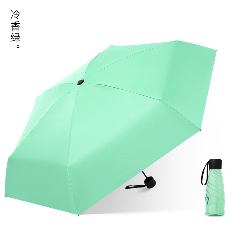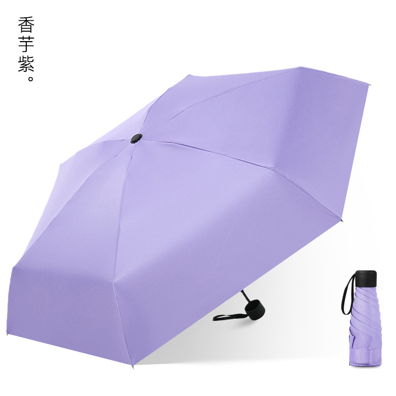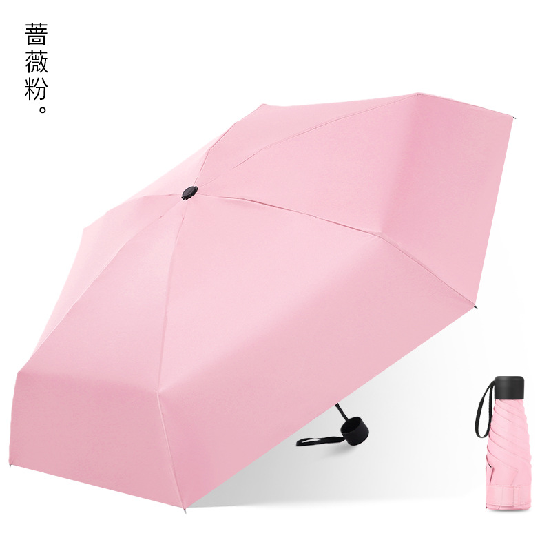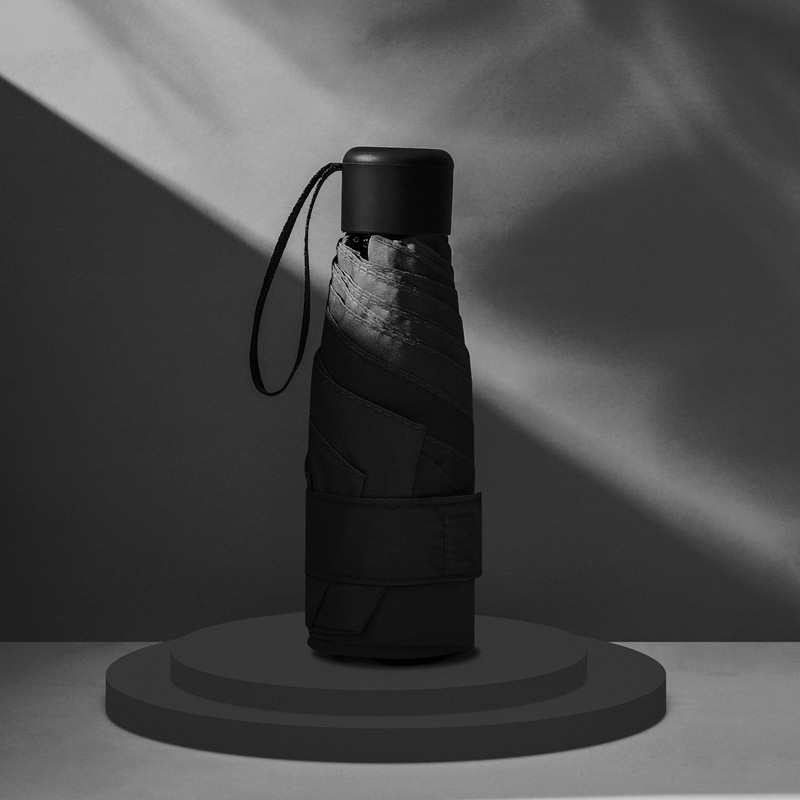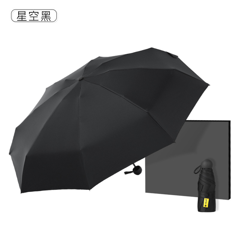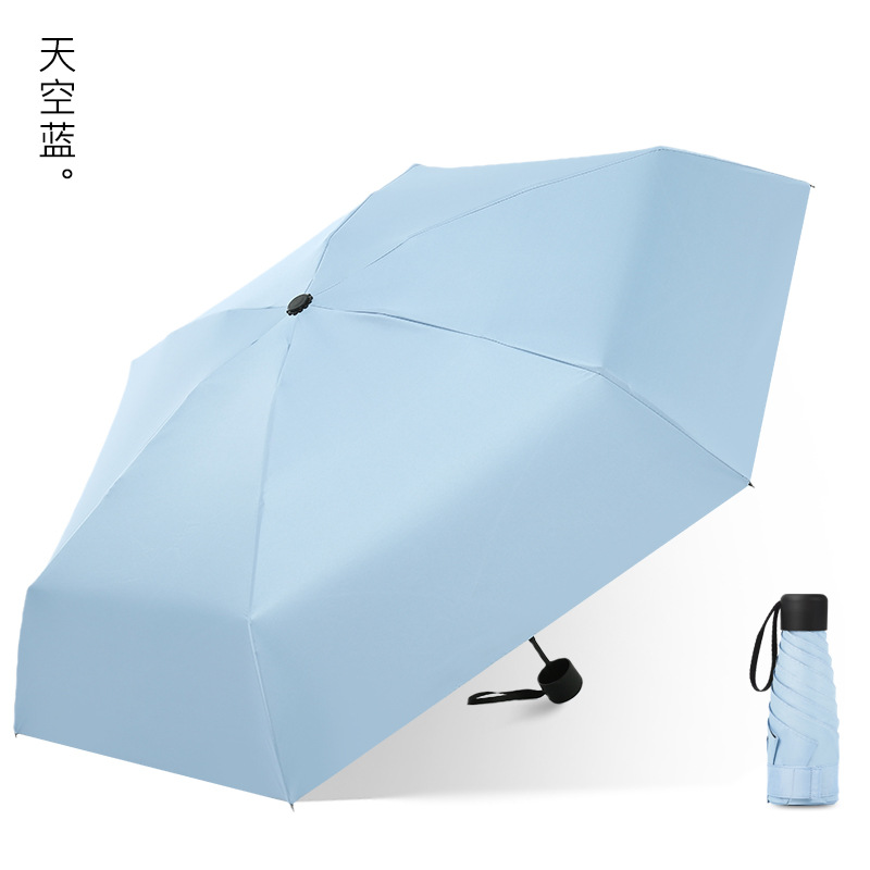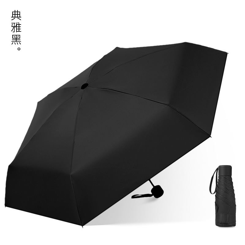 다섯 접힌 우산 8 본 블랙 접착제 접는 캡슐 써니 우산 소형 미니 휴대용 태양 우산 울트라 라이트 선물 광고 우산