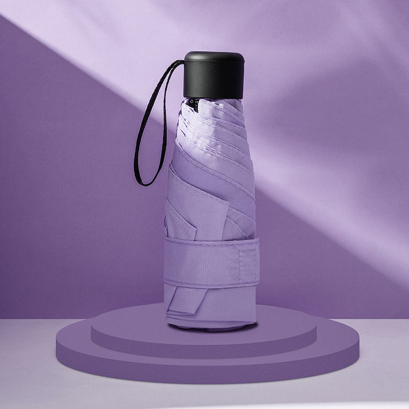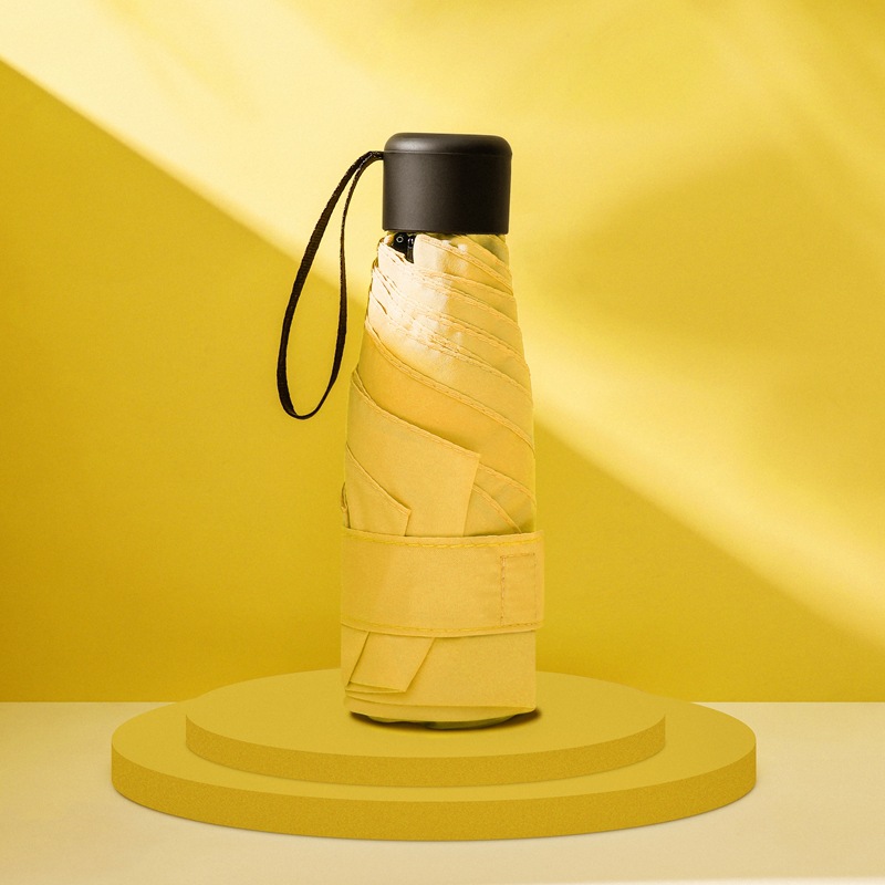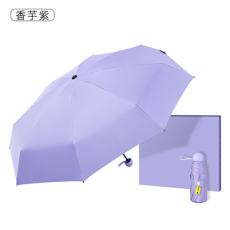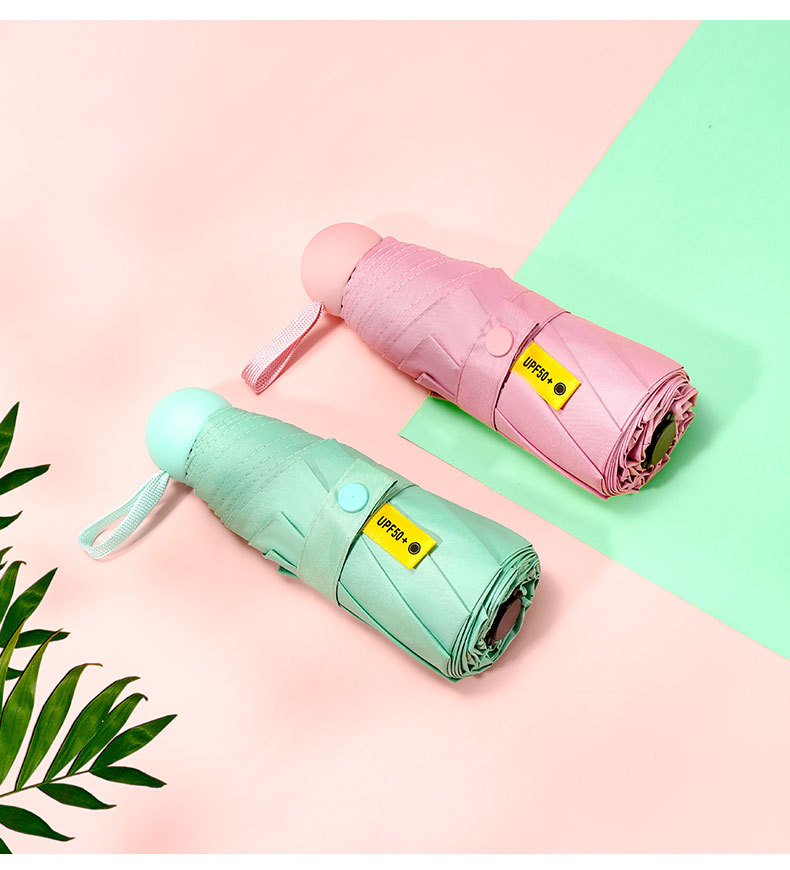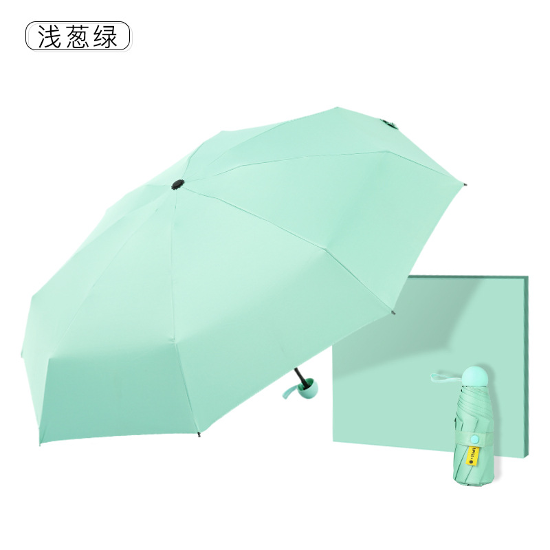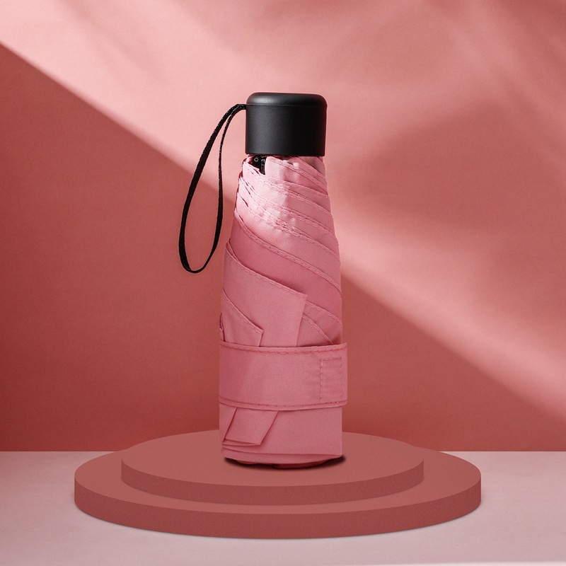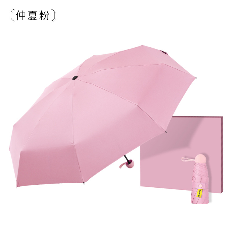 다섯 접힌 우산 8 본 블랙 접착제 접는 캡슐 써니 우산 소형 미니 휴대용 태양 우산 울트라 라이트 선물 광고 우산