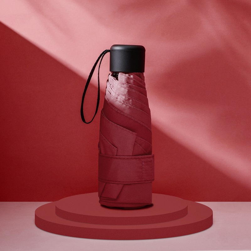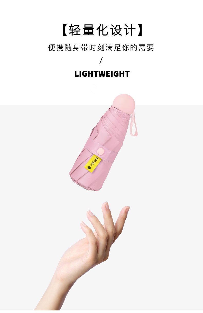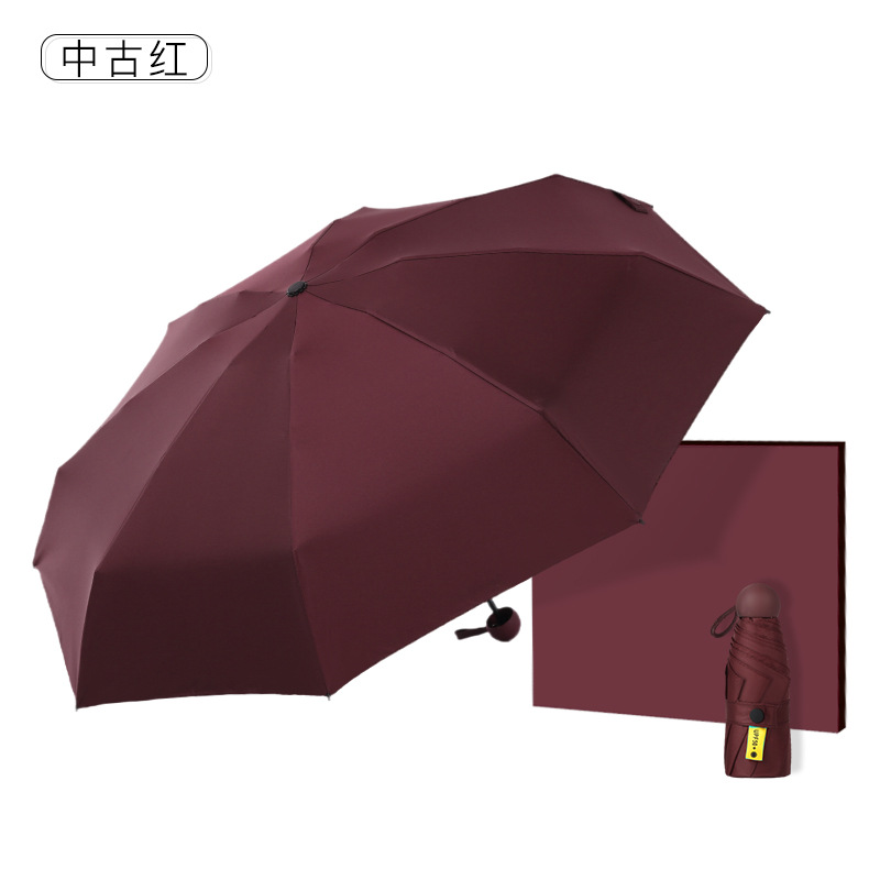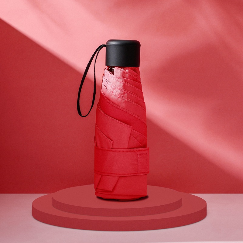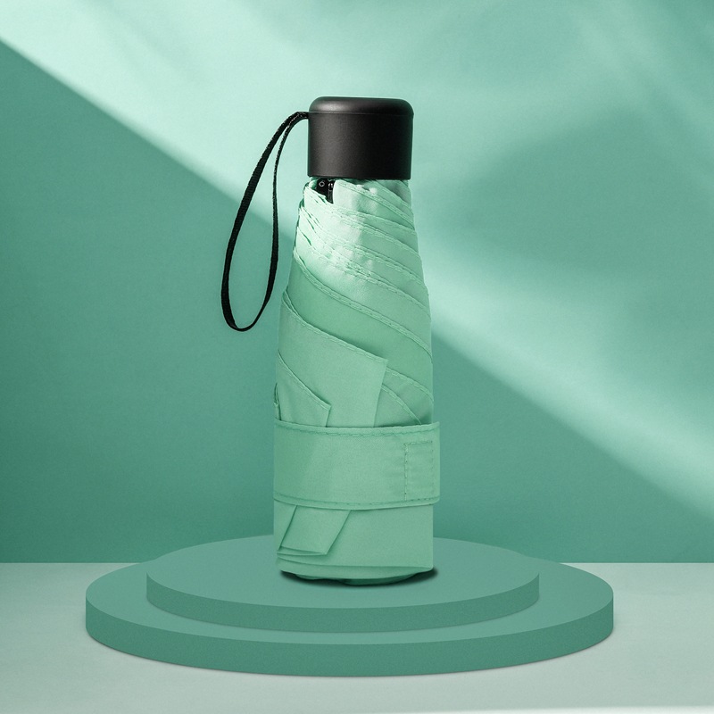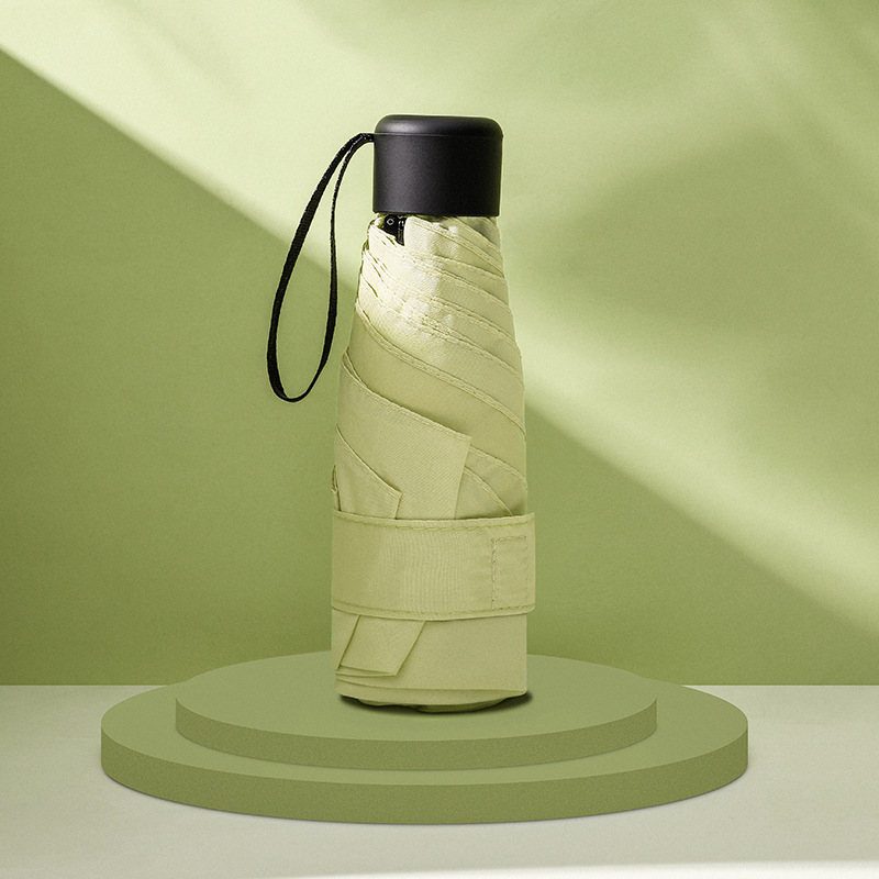 다섯 접힌 우산 8 본 블랙 접착제 접는 캡슐 써니 우산 소형 미니 휴대용 태양 우산 울트라 라이트 선물 광고 우산