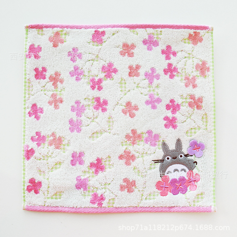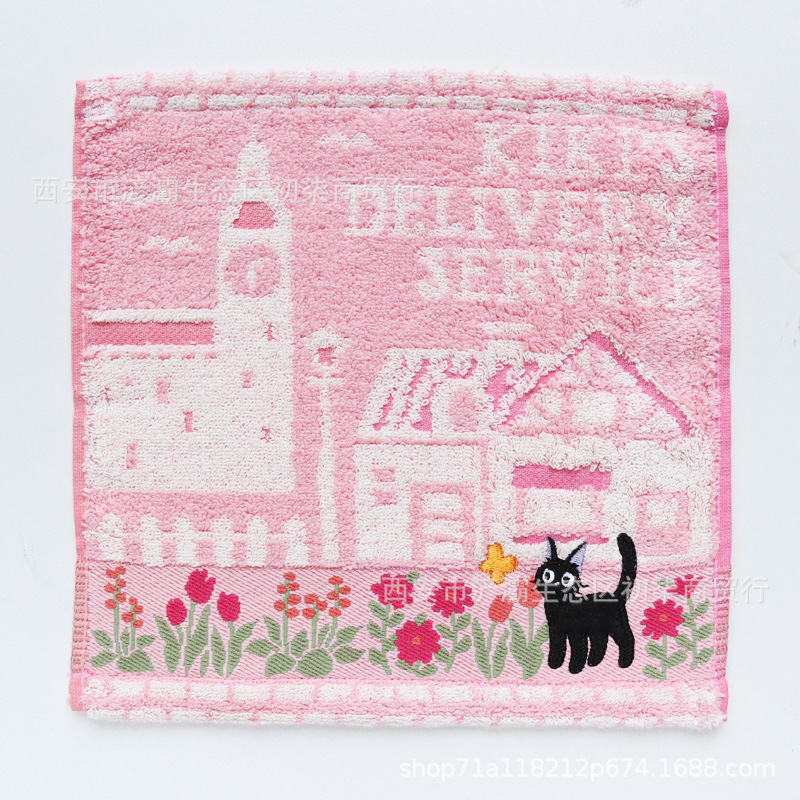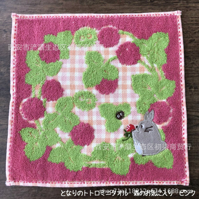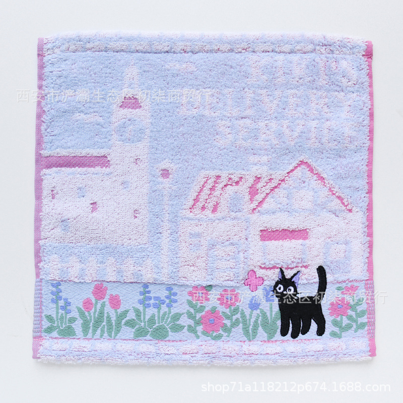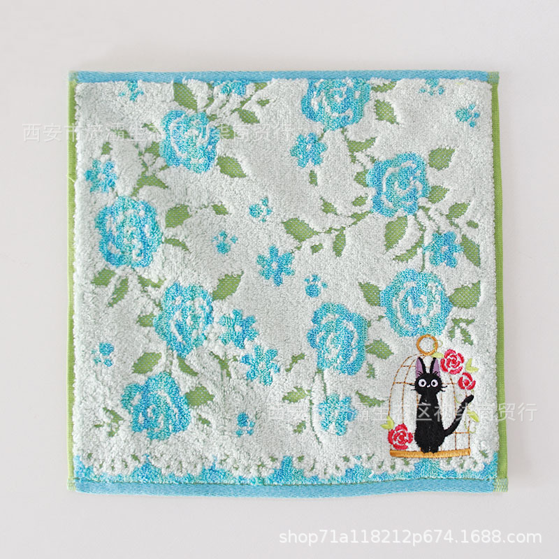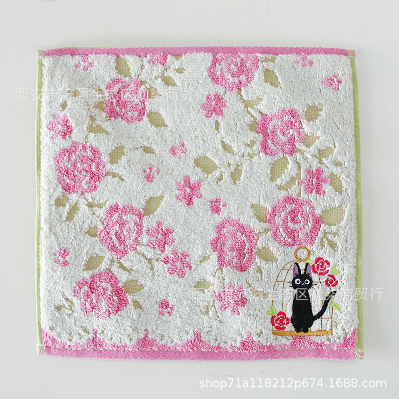 작은 사각형 수건 수출 대외 무역 일본 단일 꼬인 면화 자수 검은 고양이 딸기 숲 수건 손수건
