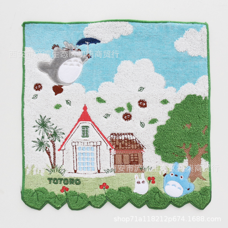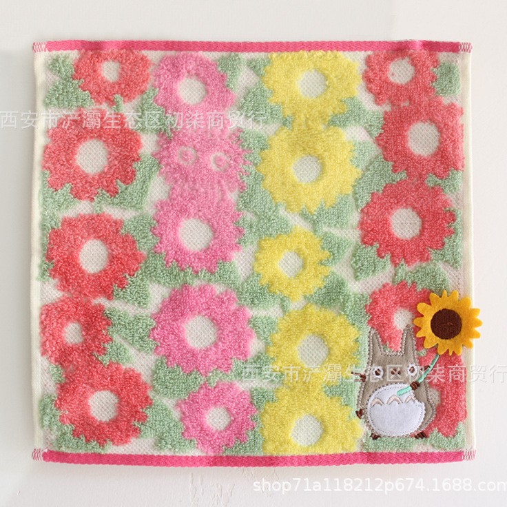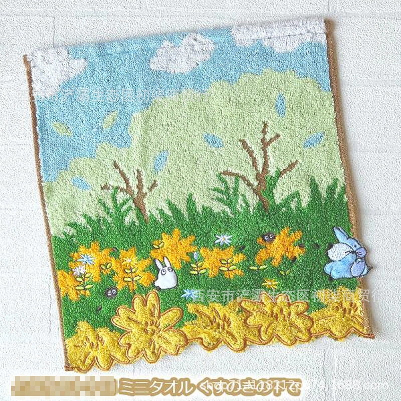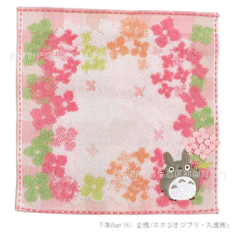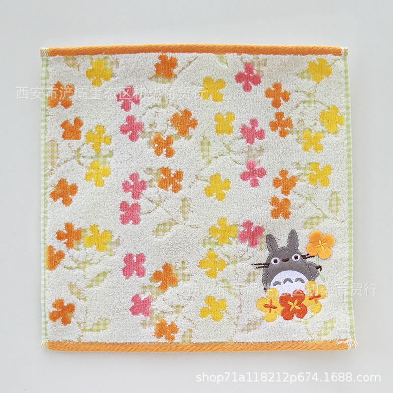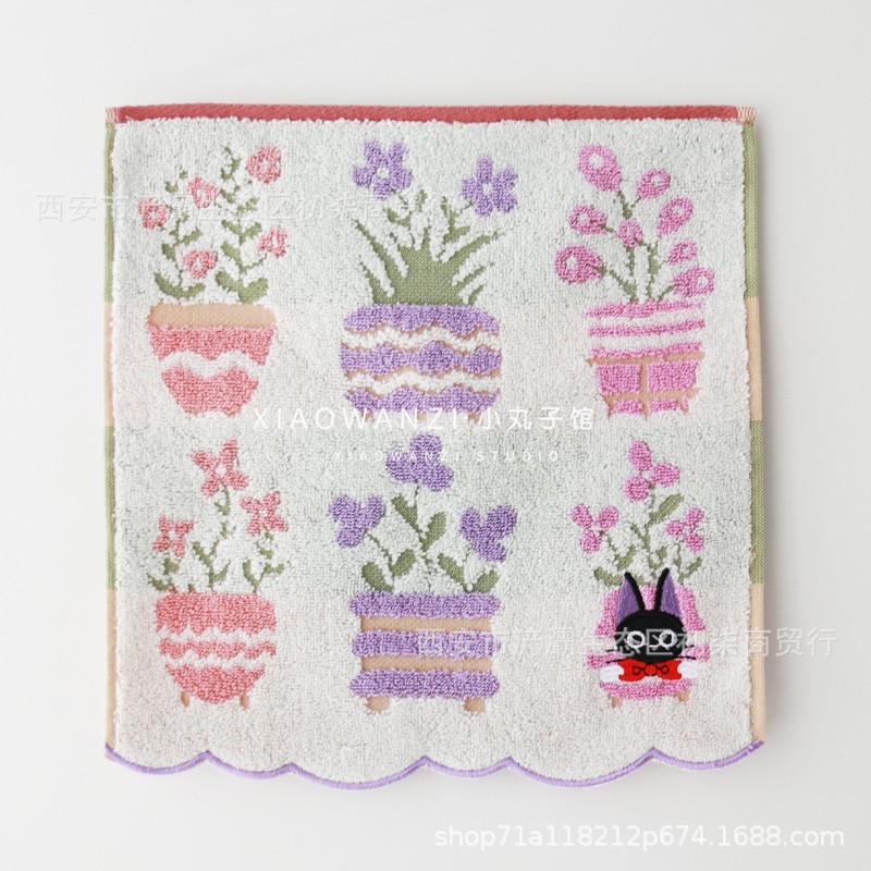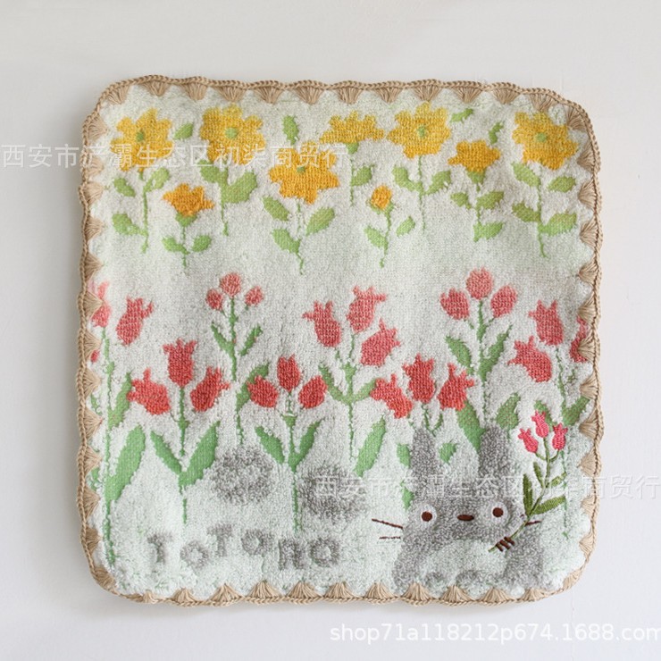 작은 사각형 수건 수출 대외 무역 일본 단일 꼬인 면화 자수 검은 고양이 딸기 숲 수건 손수건